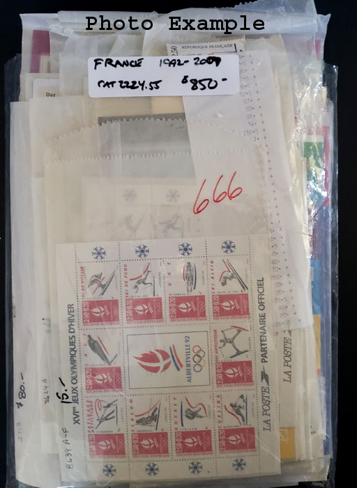463 imageFRANCE MINT NEW ISSUES , includes several dozen mint singles, sets, booklets and a large number of S/S's, mostly contained in glassines where each is identified by Scott number and the current catalog value, runs from 1992-2007, virtually all different, this group is as received from the new issue dealers, nice clean lot.