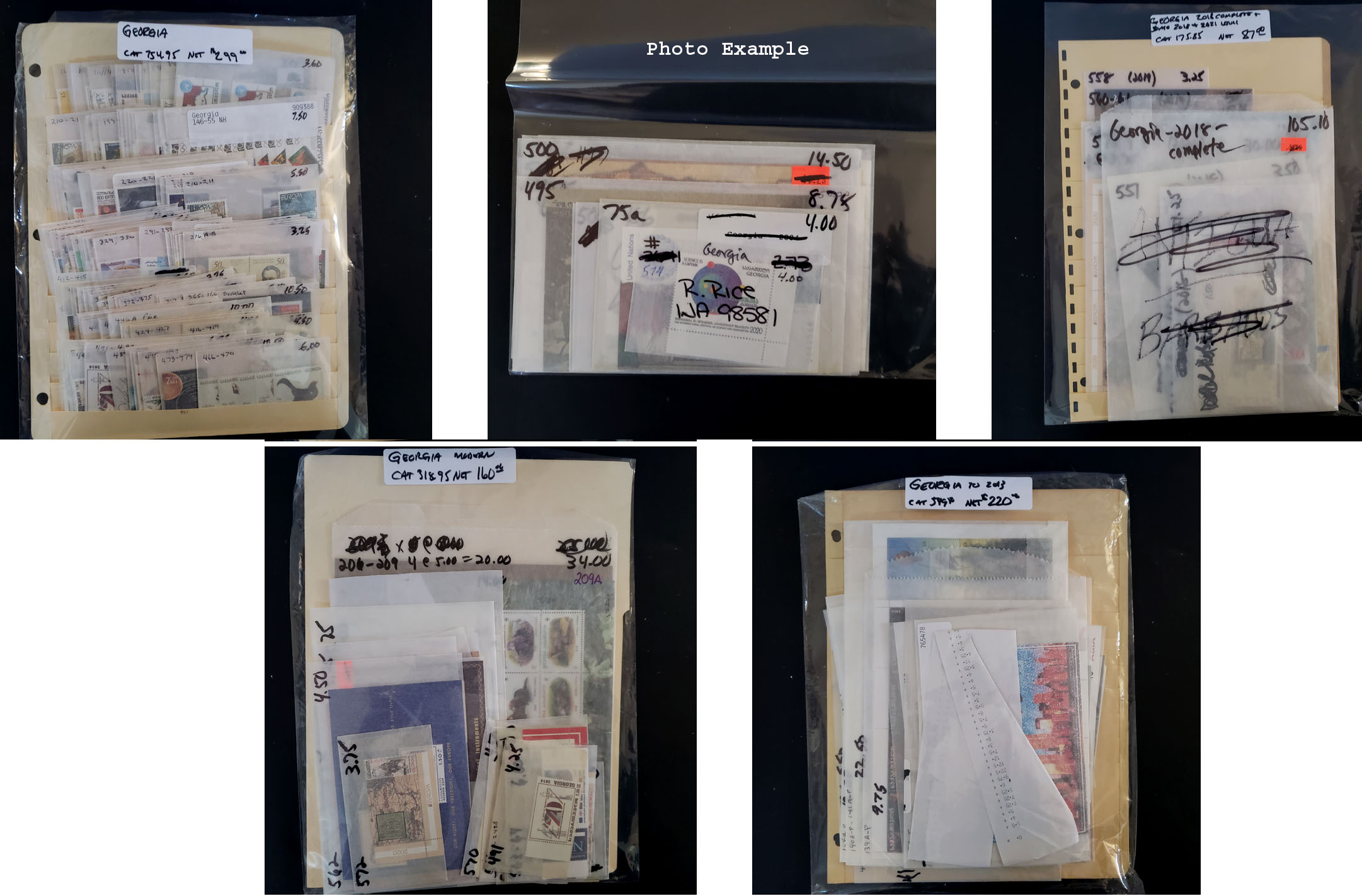 474 imageGEORGIA MINT NEW ISSUES , includes several dozen mint singles, sets, booklets and a large number of S/S's, mostly contained in glassines where each is identified by Scott number and the current catalog value, runs from #73//572, virtually all different, this group is as received from the new issue dealers, nice clean lot.