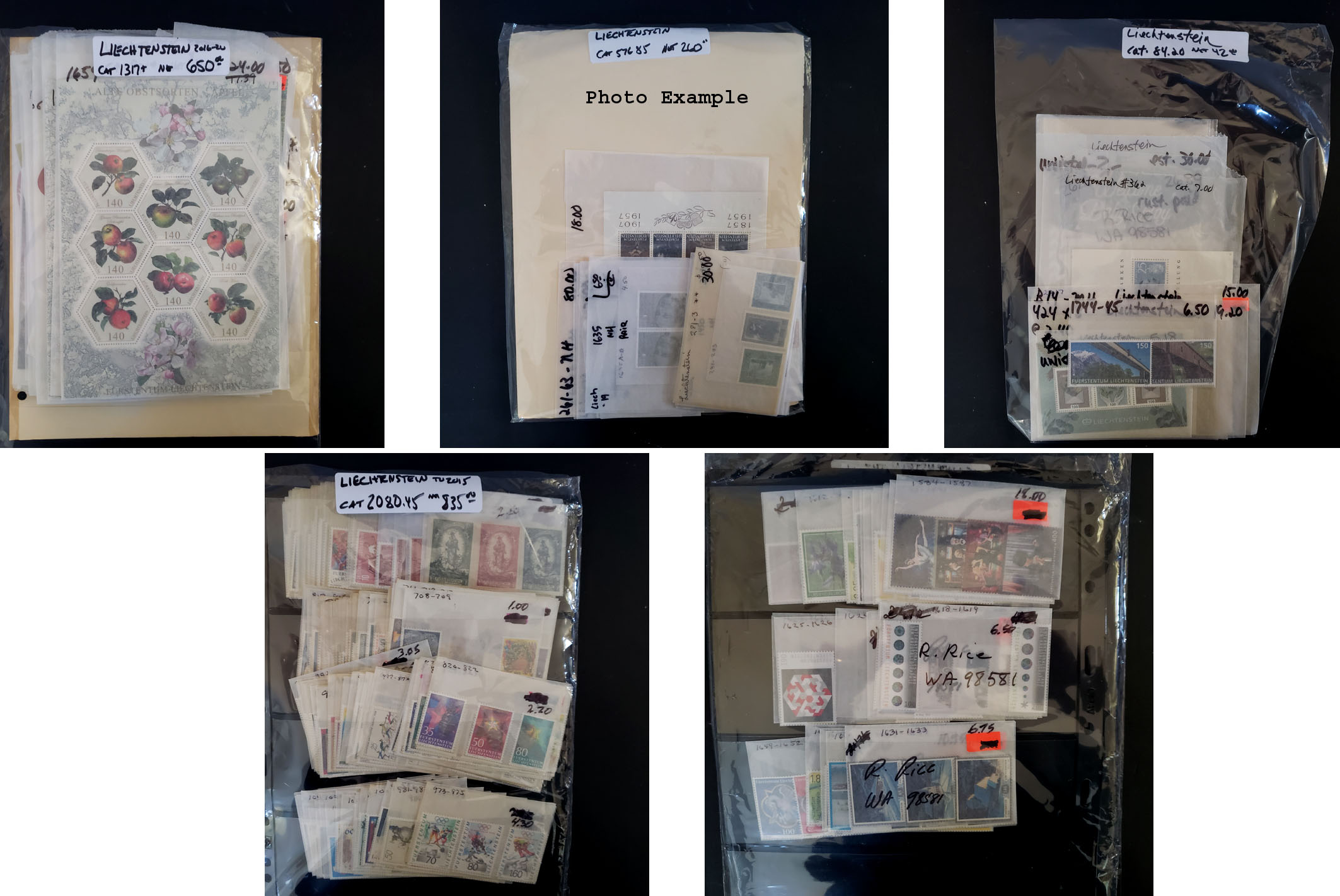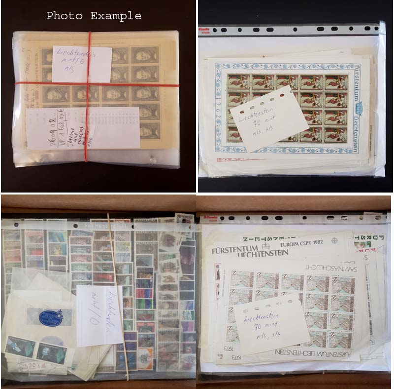 588 imageLIECHTENSTEIN ACCUMULATION, includes several hundred mint and used singles, sets, S/S's, contained on stock pages in a three ring binder, there is duplication here, includes some more modern items, some better early items and also some better B.O.B. items too, the overall condition is pretty clean but some faults are to be expected, values up to about $100 with a few higher, there should be several thousand dollars catalog value here.