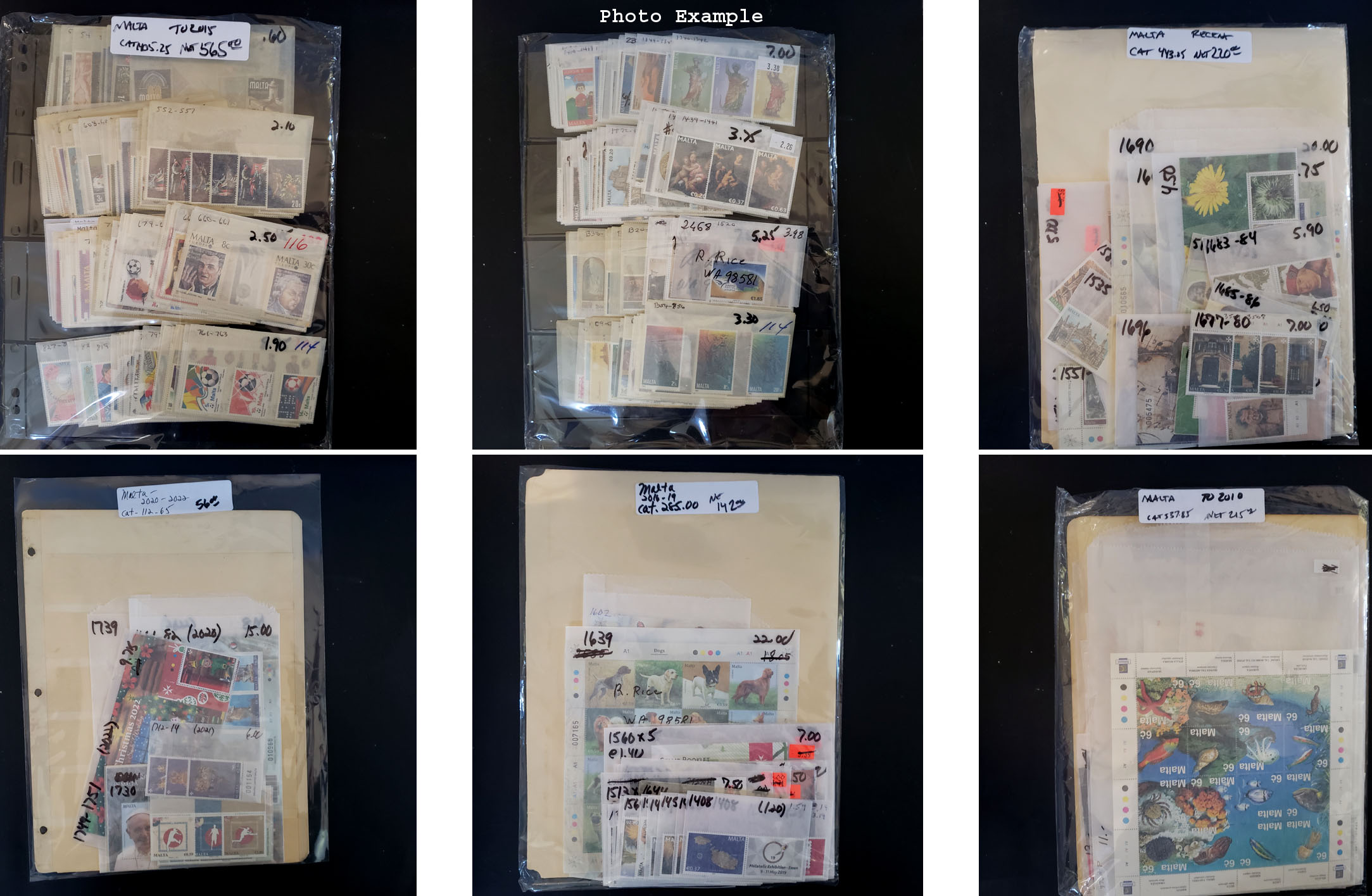 597 imageMALTA MINT NEW ISSUES , includes several dozen mint singles, sets, booklets and a large number of S/S's, mostly contained in glassines where each is identified by Scott number and the current catalog value, runs from #317//1751, virtually all different, this group is as received from the new issue dealers, nice clean lot.