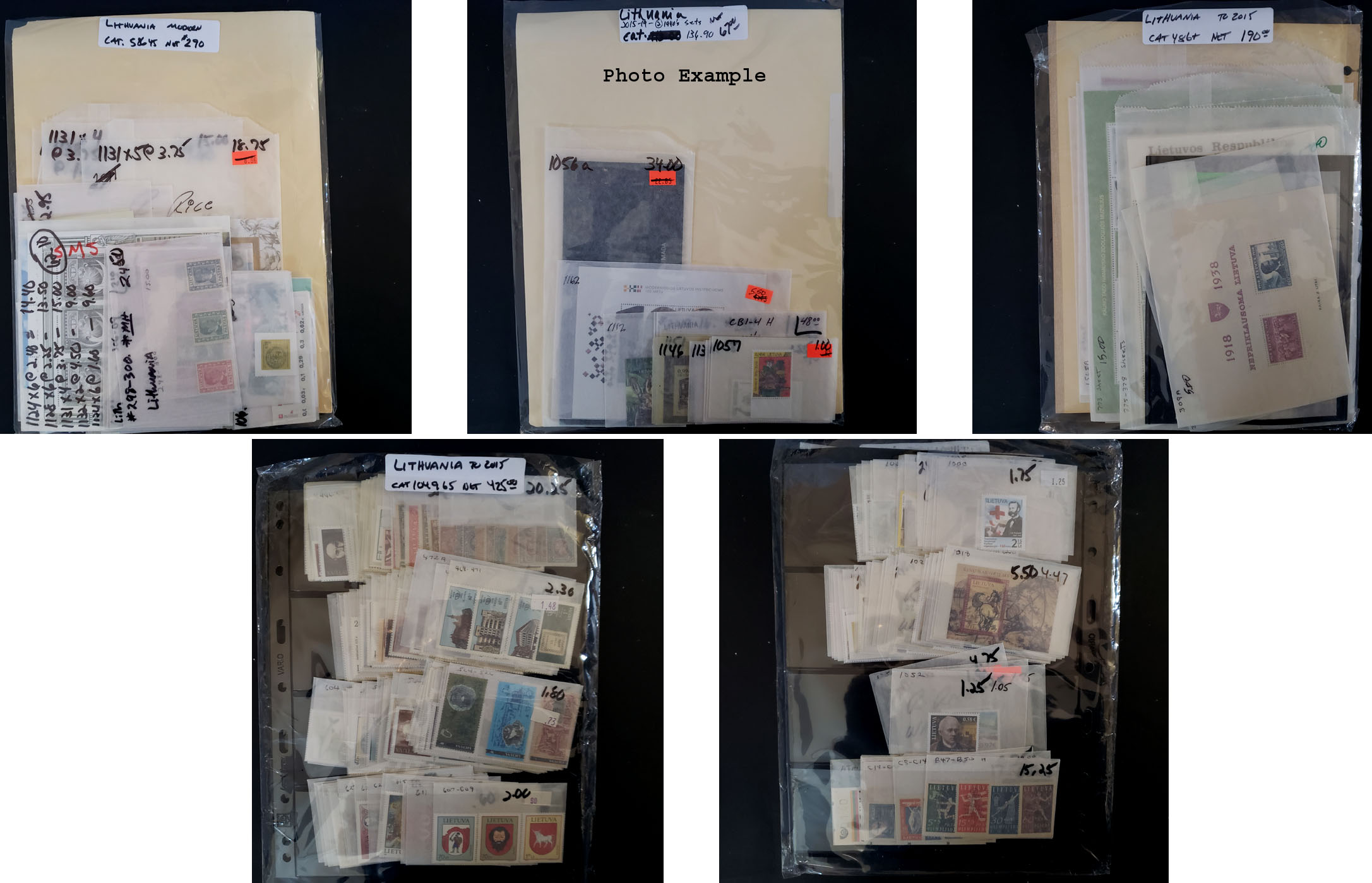 589 imageLITHUANIA MINT NEW ISSUES , includes several dozen mint singles, sets, booklets and a large number of S/S's, mostly contained in glassines where each is identified by Scott number and the current catalog value, runs from #30//1151, virtually all different, this group is as received from the new issue dealers, nice clean lot.