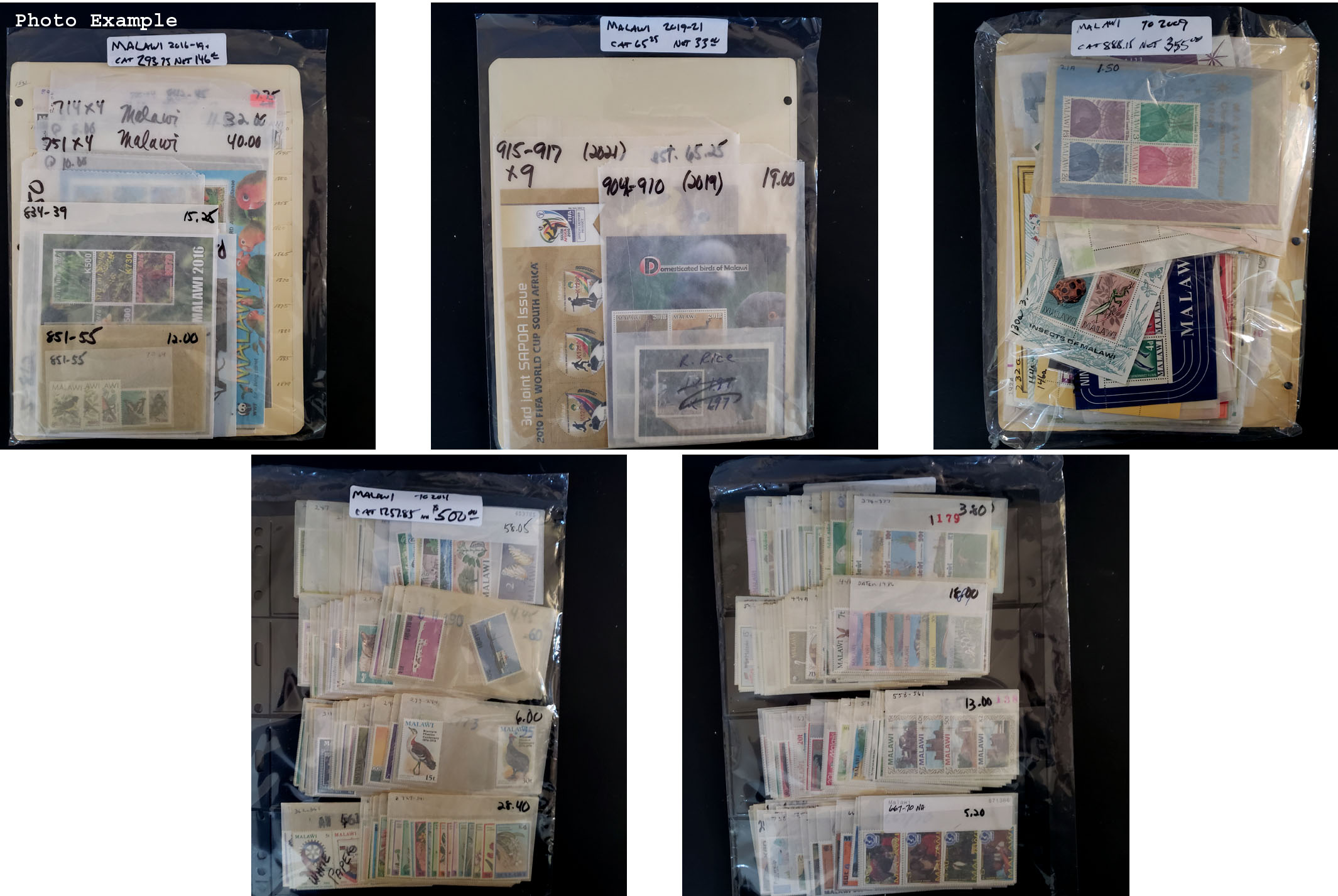 594 imageMALAWI MINT NEW ISSUES , includes several dozen mint singles, sets, booklets and a large number of S/S's, mostly contained in glassines where each is identified by Scott number and the current catalog value, runs from #41//917, virtually all different, this group is as received from the new issue dealers, nice clean lot.