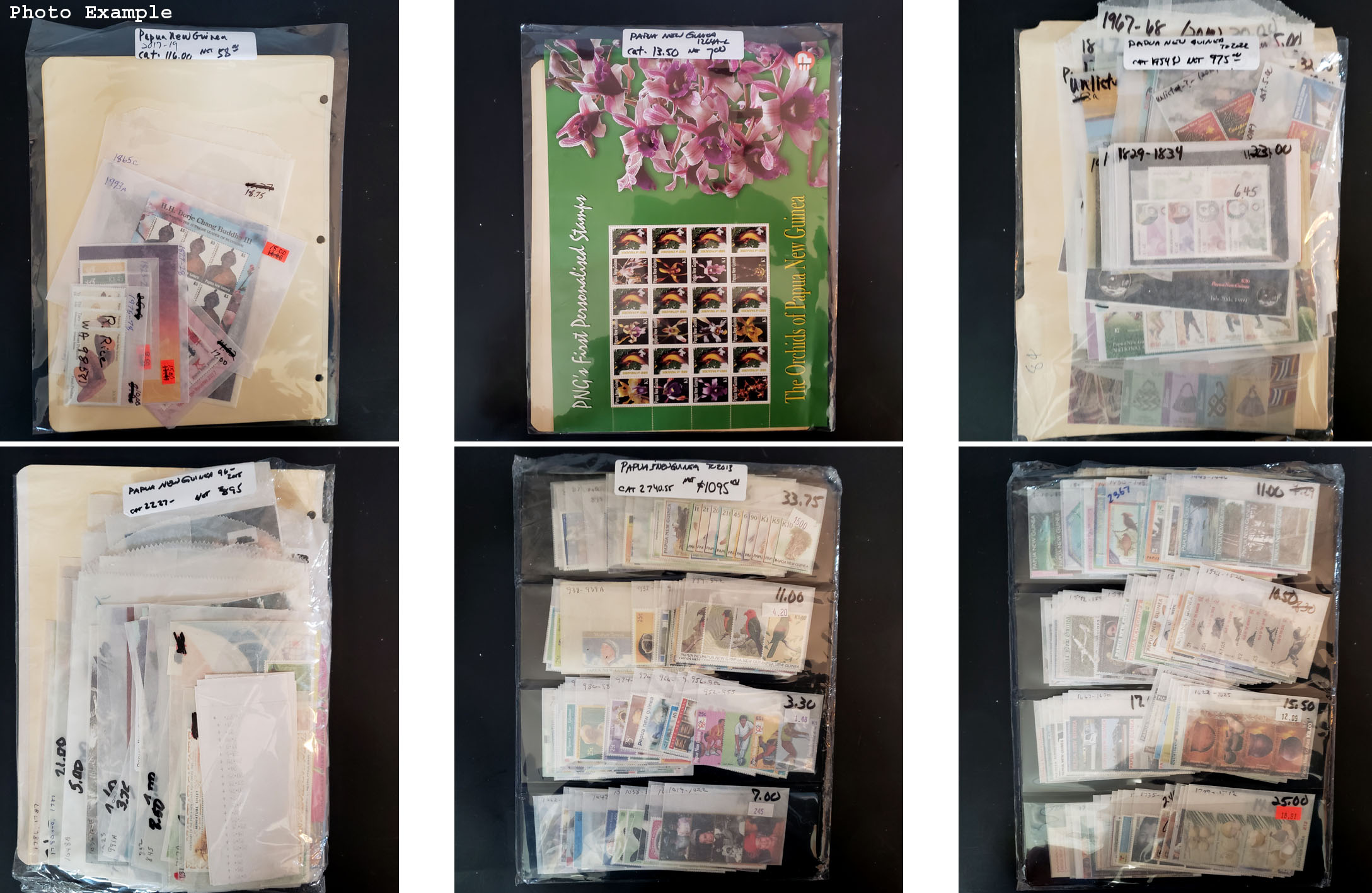 622 imagePAPUA NEW GUINEA MINT NEW ISSUES , includes several dozen mint singles, sets, booklets and a large number of S/S's and many new unlisted sets and S/S's, mostly contained in glassines where each is identified by Scott number and the current catalog value, runs from #825//1993, virtually all different, this group is as received from the new issue dealers, nice clean lot.