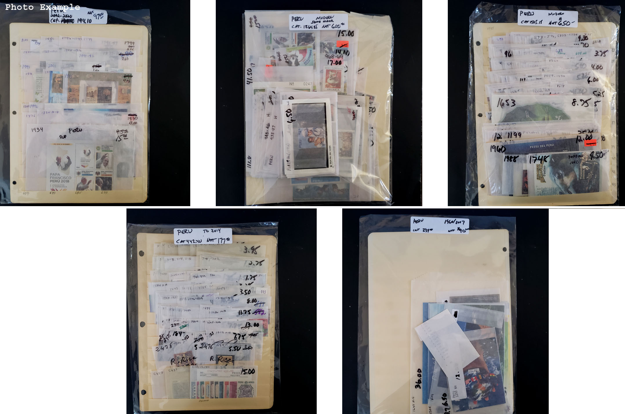 625 imagePERU MINT NEW ISSUES , includes several dozen mint singles, sets, booklets and a large number of S/S's, mostly contained in glassines where each is identified by Scott number and the current catalog value, runs from #615//1748, virtually all different, this group is as received from the new issue dealers, nice clean lot.