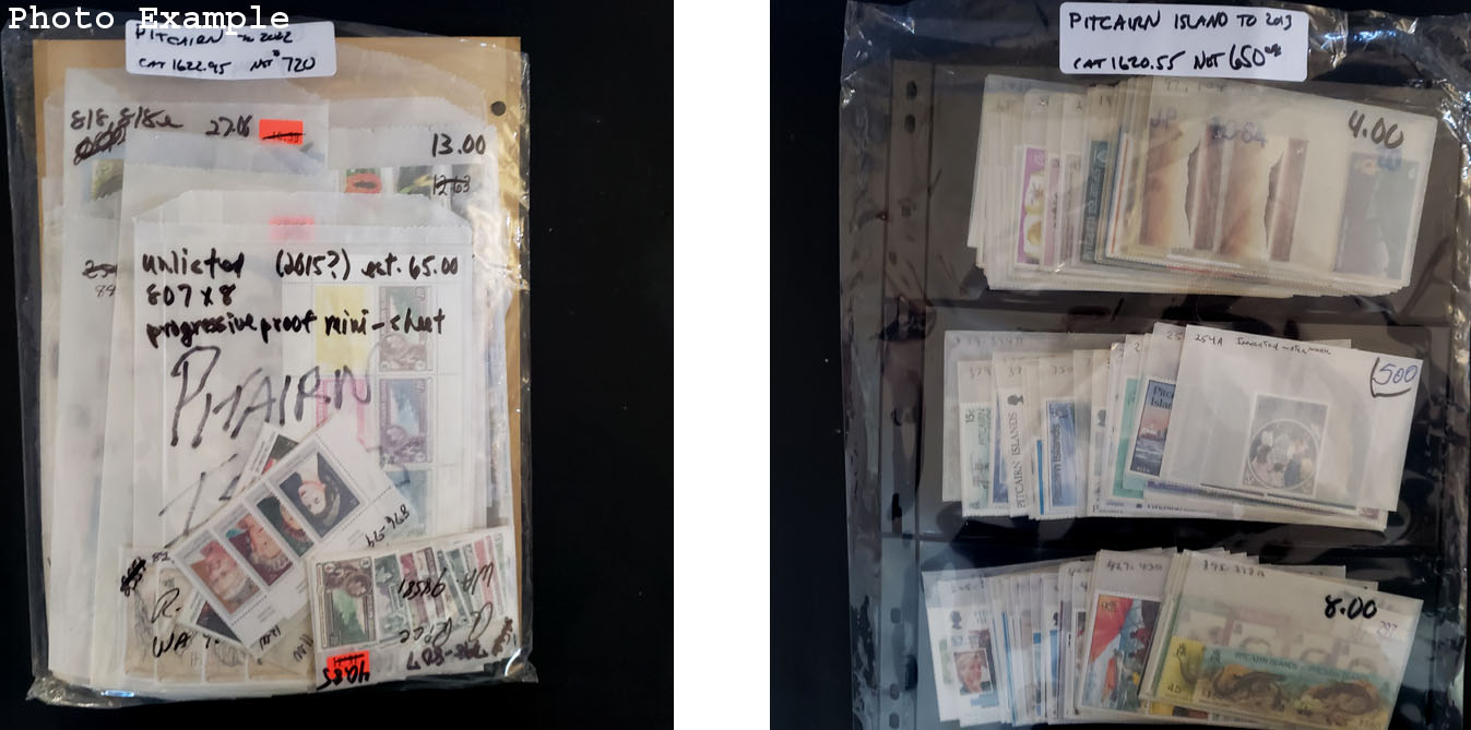 628 imagePITCAIRN ISLANDS MINT NEW ISSUES , includes several dozen mint singles, sets, booklets and a large number of S/S's, mostly contained in glassines where each is identified by Scott number and the current catalog value, runs from #97//2022, virtually all different, this group is as received from the new issue dealers, nice clean lot.