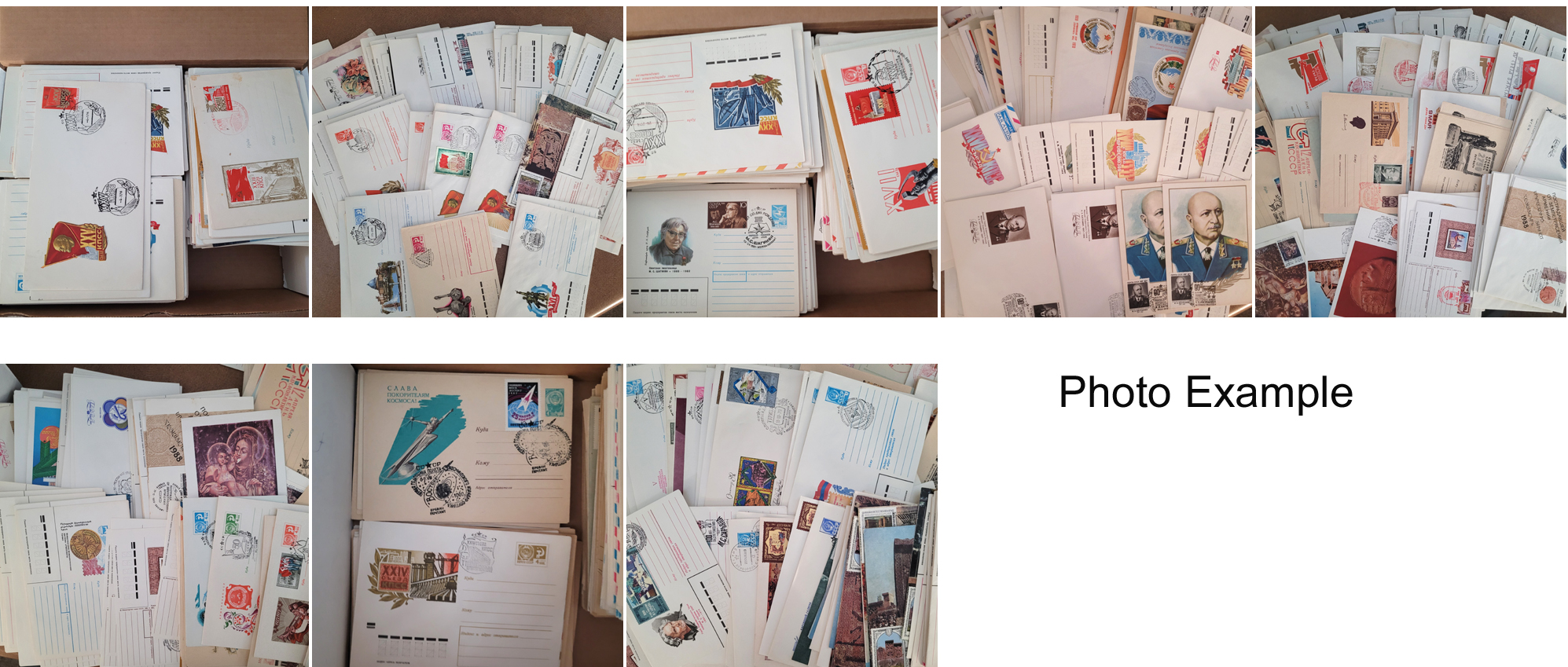 637 imageRUSSIA COVER ACCUMULATION, includes about 800 various covers, many are used, some are stationary items with and without stamps, loose in a medium white box, the lot runs from about 1947 to 1991, there is duplication here but generally in the 1-3 of each, there are some FDC's, also a good number of event covers with interesting cancels, the overall condition is really pretty clean with some scattered faults to be expected, there are dozens of covers here which would retail in the $10-25 range and maybe a 100 or so in the $5 range, lots of covers and a huge amount of retail potential, worth a good look.