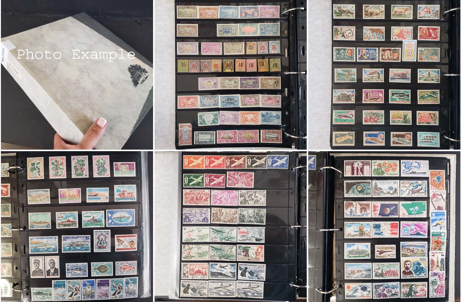 655 imageST. PIERRE & MIQUELON STAMP AND COVER COLLECTION, includes a few hundred mostly different mint and used singles, pairs, strips, booklets and S/S's, also a few dozen low end covers, contained on black stock pages in a three ring binder, mixed NH and H, overall pretty clean with some scattered faults, worth a look.