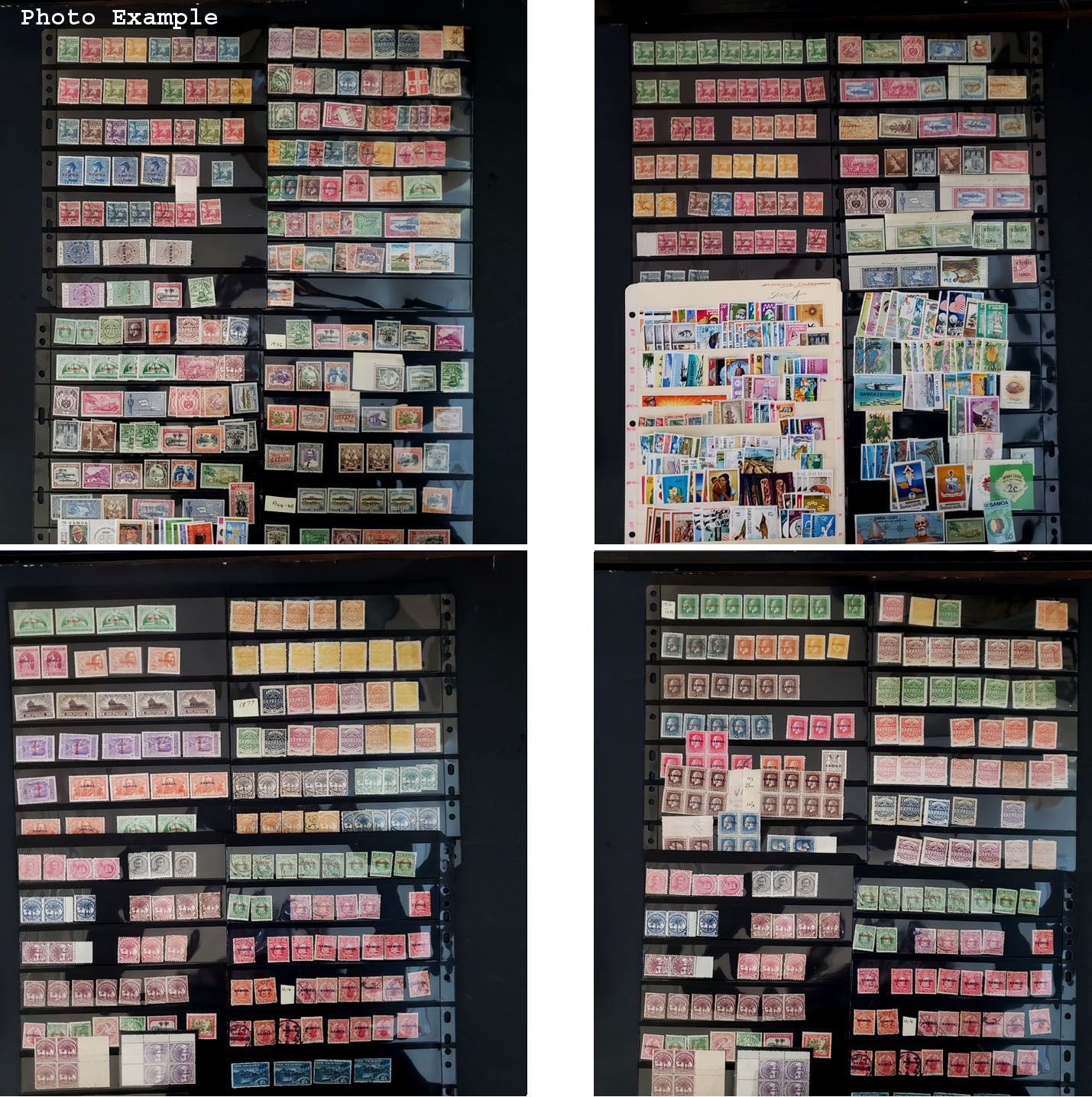 643 imageSAMOA ACCUMULATION, includes several dozen mixed mint and used, sorted onto stock pages, good variety but there is duplication, usual mixed condition with some faults to be expected, there appears to be a significant amount of catalog value here but many of the early issues may be reprints, a good showing of overprint issues, values up to about $100 with some higher, there would be many thousands of dollars in catalog value if all are genuine.