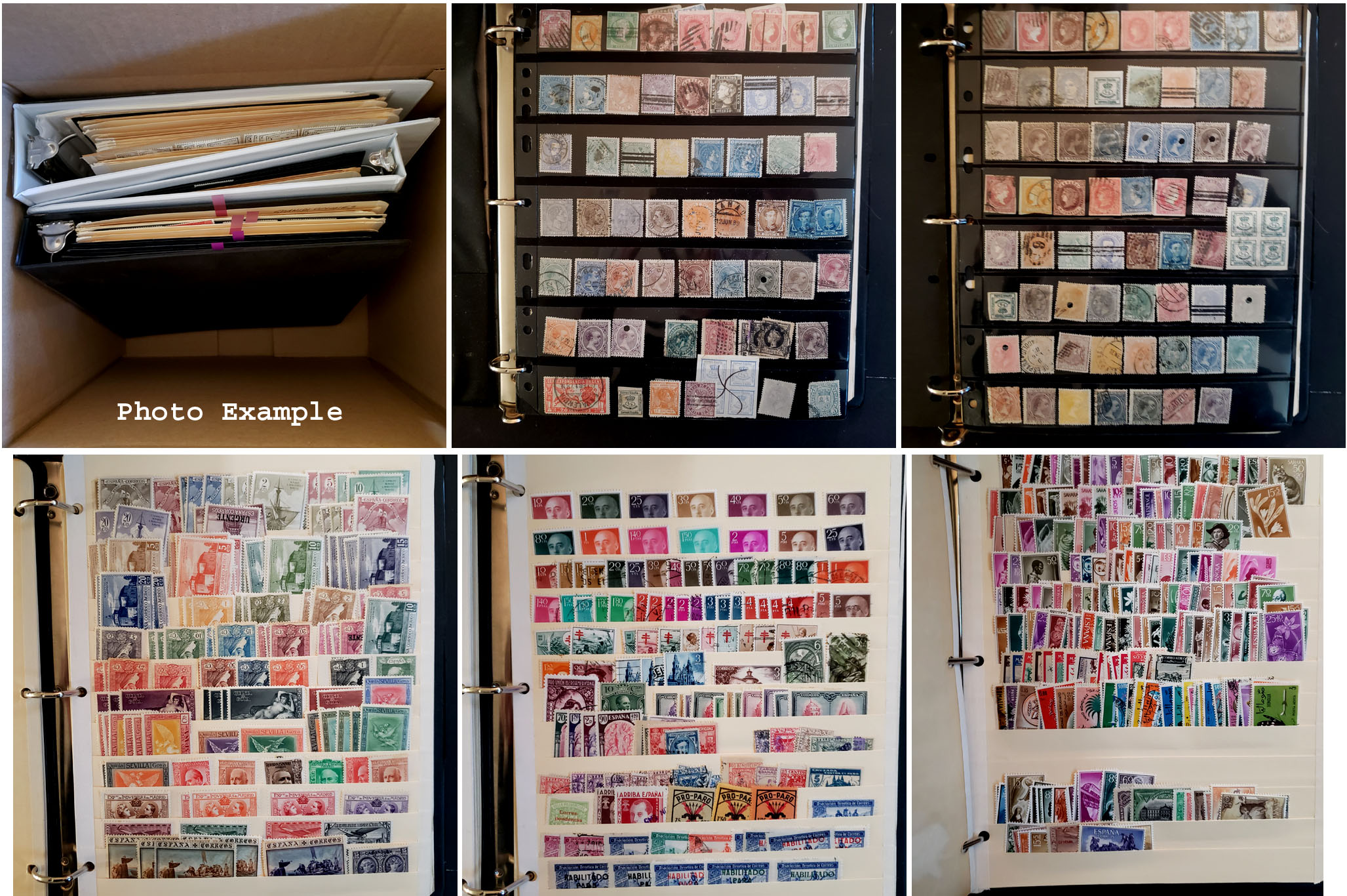 653 imageSPAIN AND AREA ACCUMLATION, includes several hundred various mixed mint and used singles, sets and S/S's, sorted onto stock pages in three, three ring binders, there is some early material and the group runs into the 2000 period, good B.O.B., good variety but there is duplication, expect some faults, values up to about $50 with a few higher, plenty of stamps to look through with this one.
