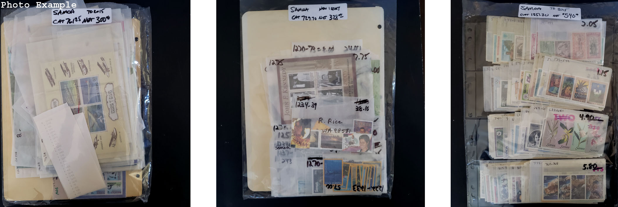 642 imageSOMOA MINT NEW ISSUES , includes several dozen mint singles, sets, booklets and a large number of S/S's, mostly contained in glassines where each is identified by Scott number and the current catalog value, runs from #191//1275, virtually all different, this group is as received from the new issue dealers, nice clean lot.