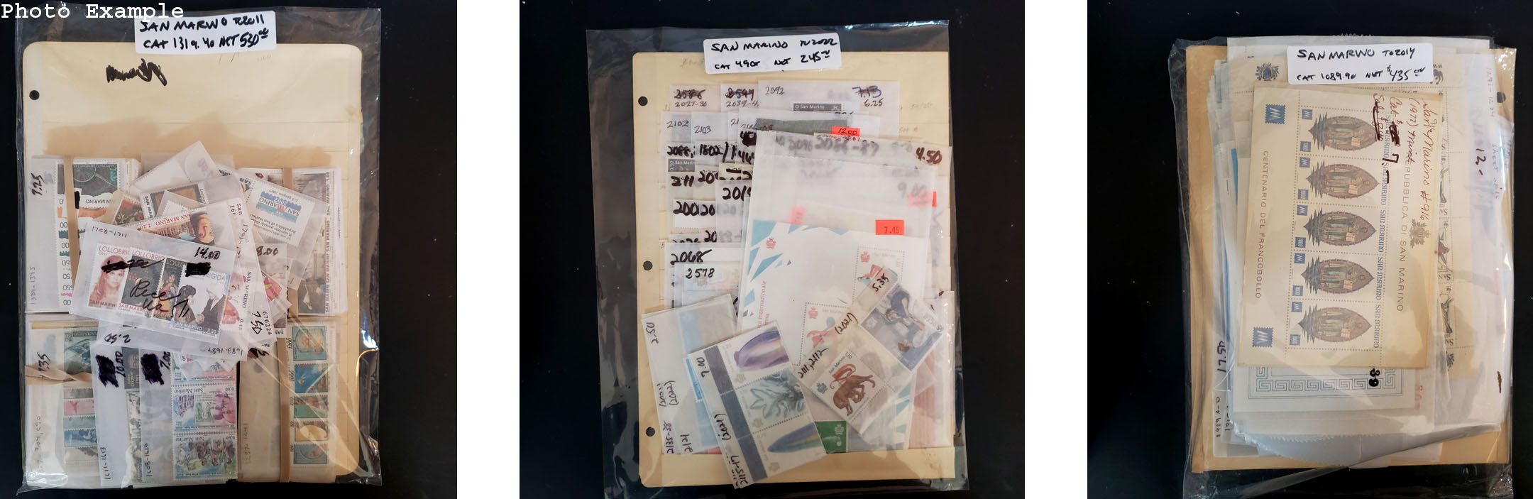 644 imageSAN MARINO MINT NEW ISSUES , includes several dozen mint singles, sets, booklets and a large number of S/S's, mostly contained in glassines where each is identified by Scott number and the current catalog value, runs from #327//2138, virtually all different, this group is as received from the new issue dealers, nice clean lot.