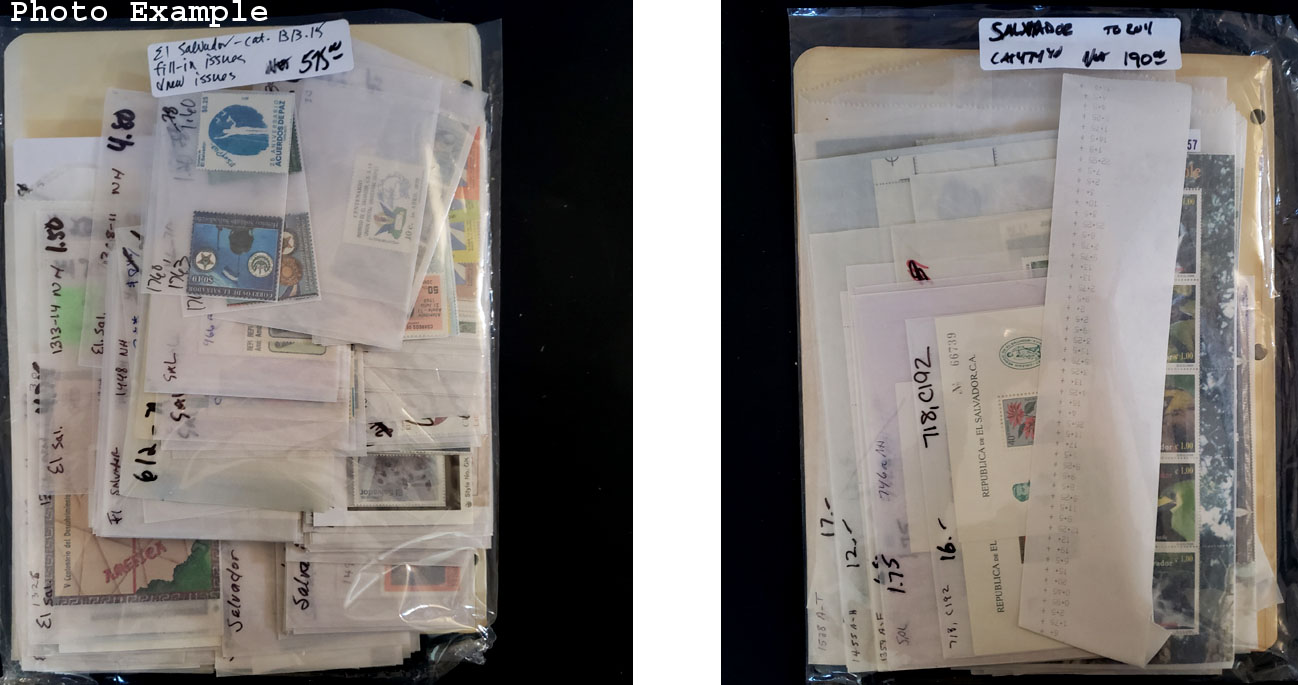 641 imageEL SALVADOR MINT NEW ISSUES , includes several dozen mint singles, sets, booklets and a large number of S/S's, mostly contained in glassines where each is identified by Scott number and the current catalog value, runs to 2009, virtually all different, this group is as received from the new issue dealers, nice clean lot.