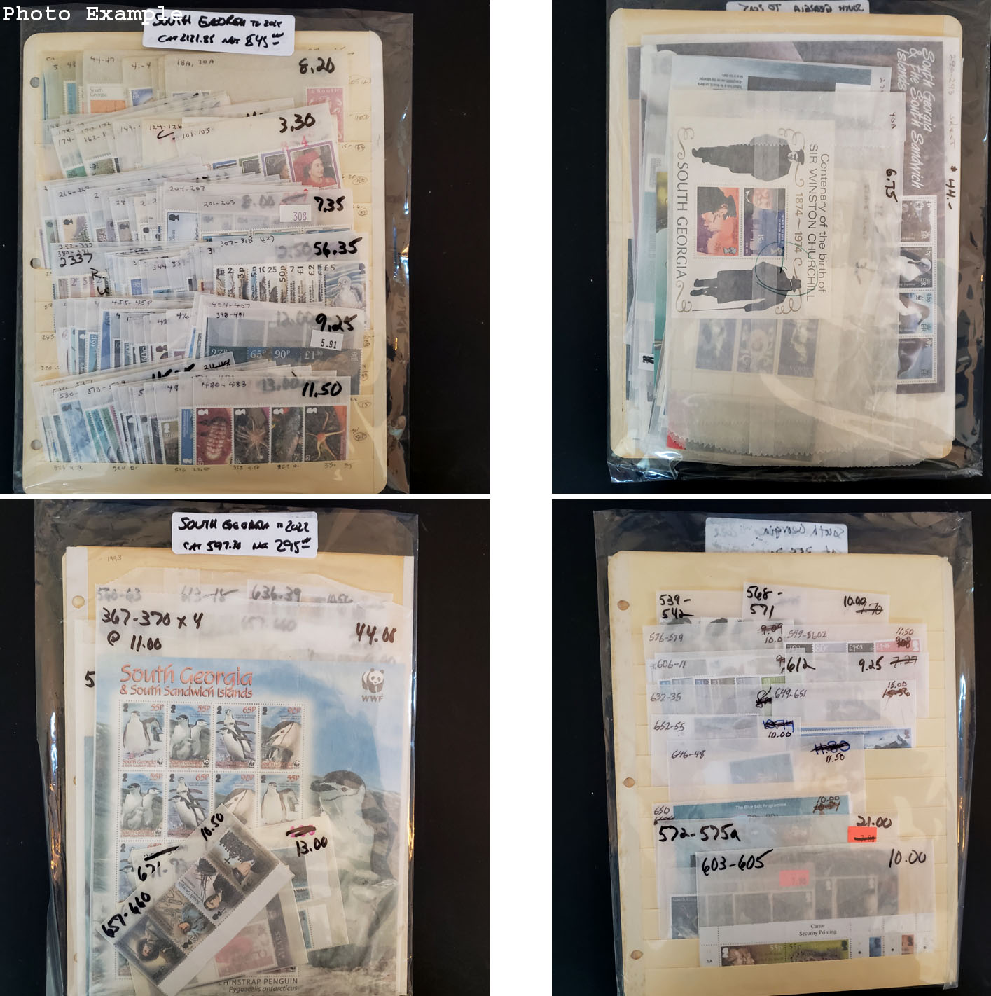 650 imageSOUTH GEORGIA MINT NEW ISSUES , includes several dozen mint singles, sets, booklets and a large number of S/S's, mostly contained in glassines where each is identified by Scott number and the current catalog value, runs from #18A//660, virtually all different, this group is as received from the new issue dealers, nice clean lot .