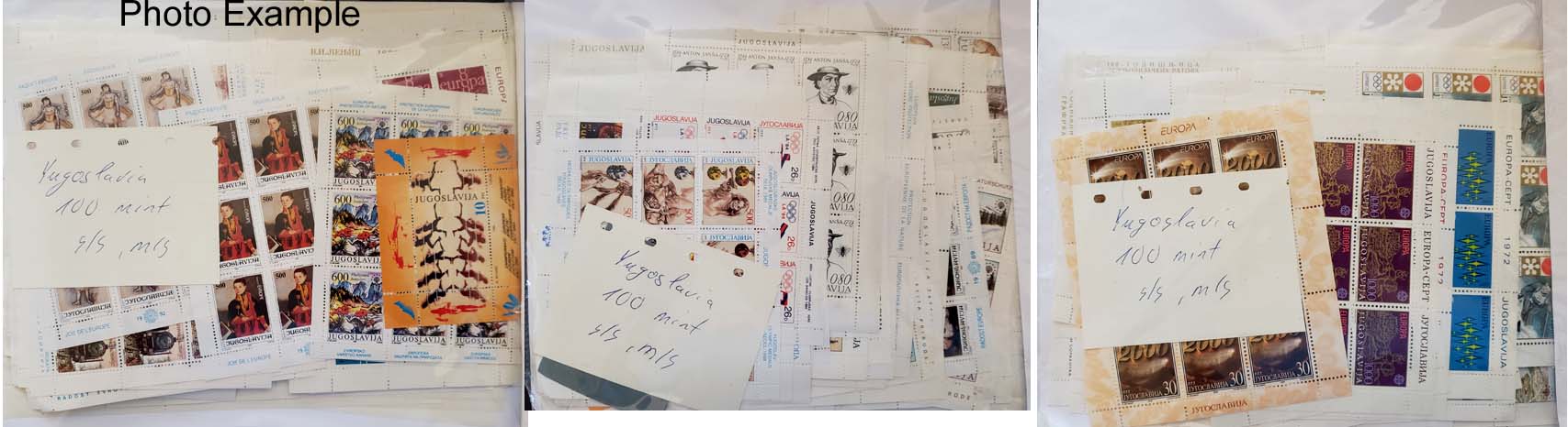 699 imageYUGOSLAVIA MINT SHEETLET AND S/S ACCUMULATION, includes 400 various mint sheetlets and S/S's, contained in four groups of 100 different, all appear to be NH.