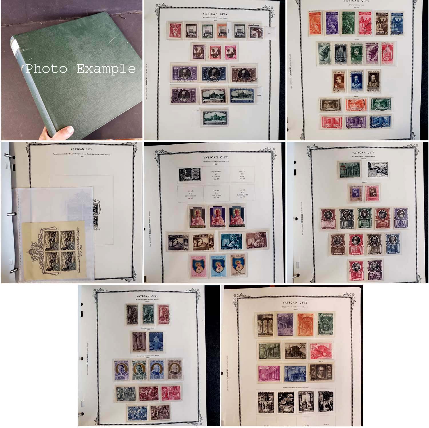 695 imageVATICAN CITY COLLECTION, includes a few hundred mostly different mint and used singles, sets, and S/S's but mostly mint, mounted in a Scott Specialty album, the collection runs to about 1986 and includes some B.O.B. items, the overall condition is very clean with only some scattered faults, most of the stamps are Very Fine or better, there are some items with values in the $25 range with some higher, a very nice starter collection.