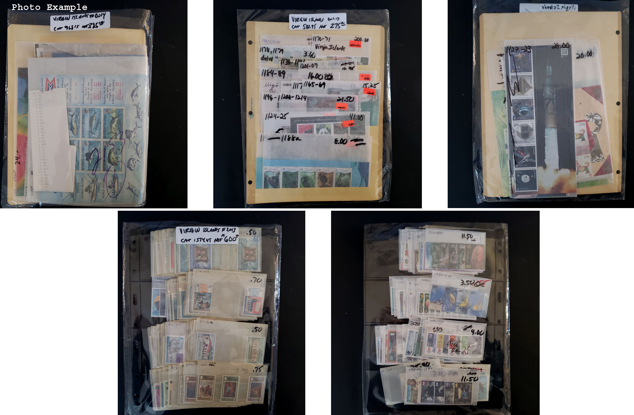 697 imageVIRGIN ISLANDS MINT NEW ISSUES , includes several dozen mint singles, sets, booklets and a large number of S/S's, mostly contained in glassines where each is identified by Scott number and the current catalog value, runs from #241//1188, virtually all different, this group is as received from the new issue dealers, nice clean lot.