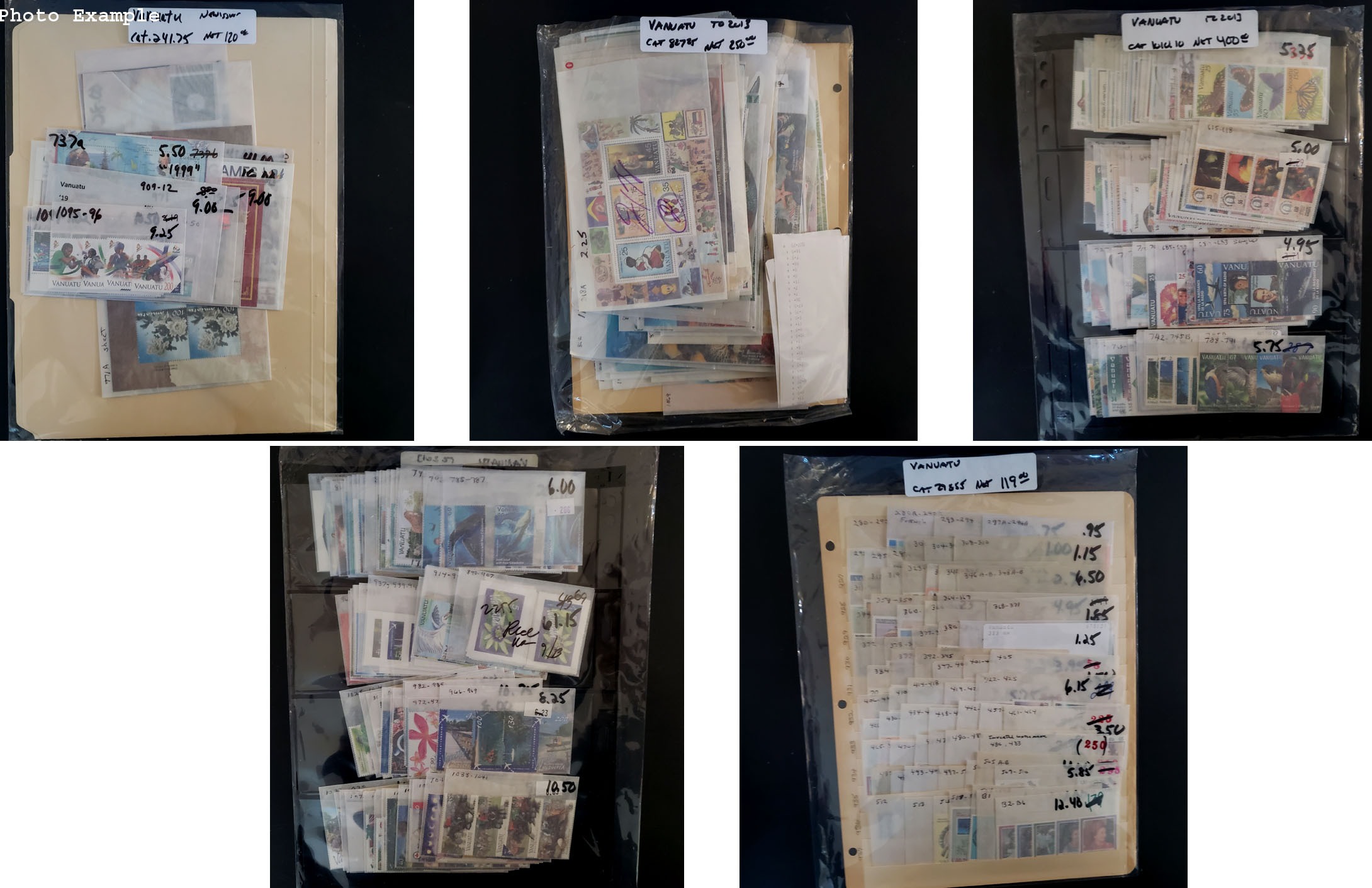 691 imageVANUATU MINT NEW ISSUES , includes several dozen mint singles, sets, booklets and a large number of S/S's, mostly contained in glassines where each is identified by Scott number and the current catalog value, runs from #280//1096, virtually all different, this group is as received from the new issue dealers, nice clean lot.