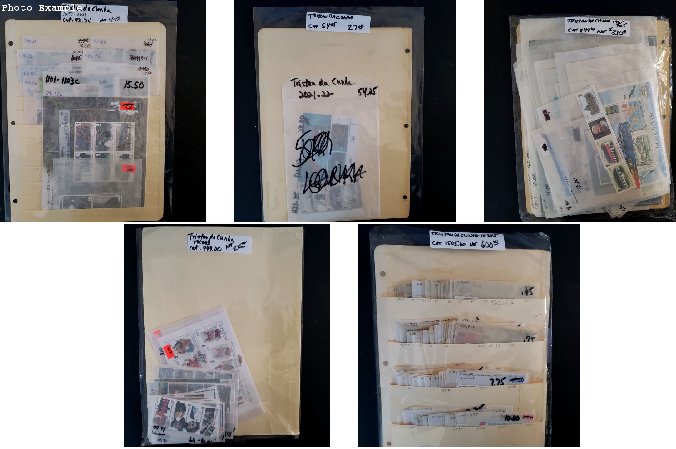 684 imageTRISTAN DA CUNHA MINT NEW ISSUES , includes several dozen mint singles, sets, booklets and a large number of S/S's, mostly contained in glassines where each is identified by Scott number and the current catalog value, runs from #196//1235, virtually all different, this group is as received from the new issue dealers, nice clean lot.