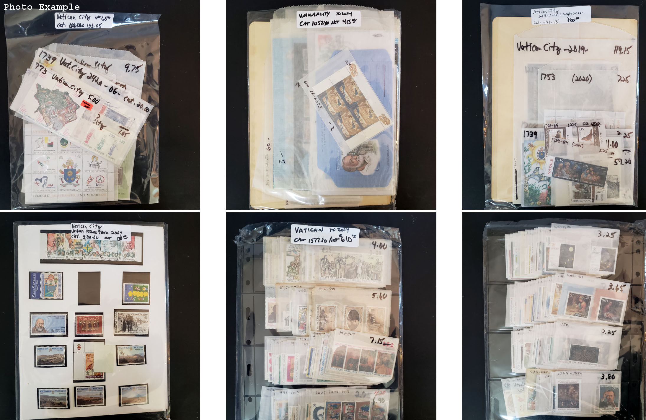694 imageVATICAN CITY MINT NEW ISSUES , includes several dozen mint singles, sets, booklets and a large number of S/S's, mostly contained in glassines where each is identified by Scott number and the current catalog value, runs from #806//1784, virtually all different, this group is as received from the new issue dealers, nice clean lot .
