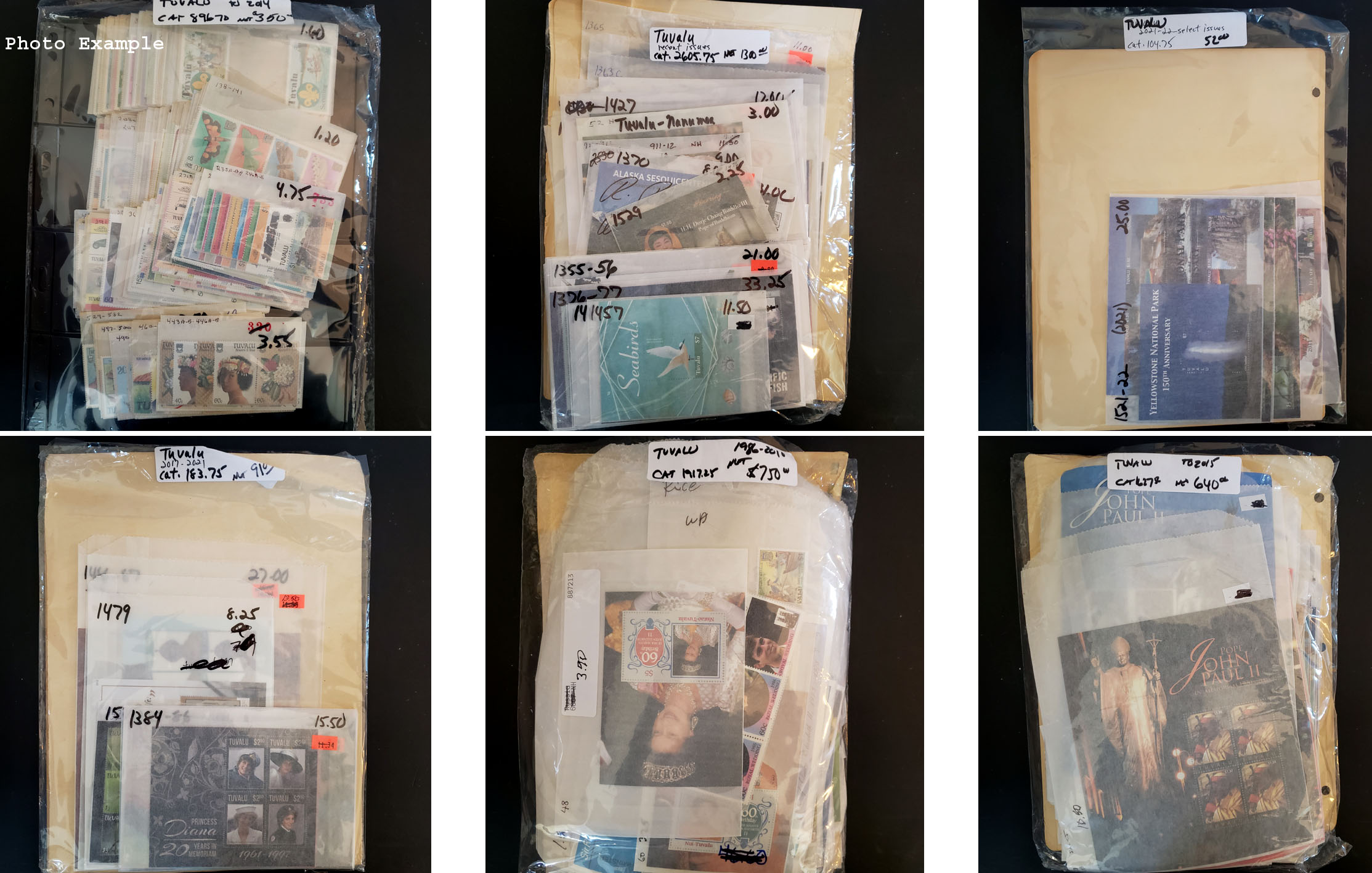 686 imageTUVALU MINT NEW ISSUES , includes several dozen mint singles, sets, booklets and a large number of S/S's, mostly contained in glassines where each is identified by Scott number and the current catalog value, runs from #50//2021, virtually all different, this group is as received from the new issue dealers, nice clean lot with a huge amount of retail value.