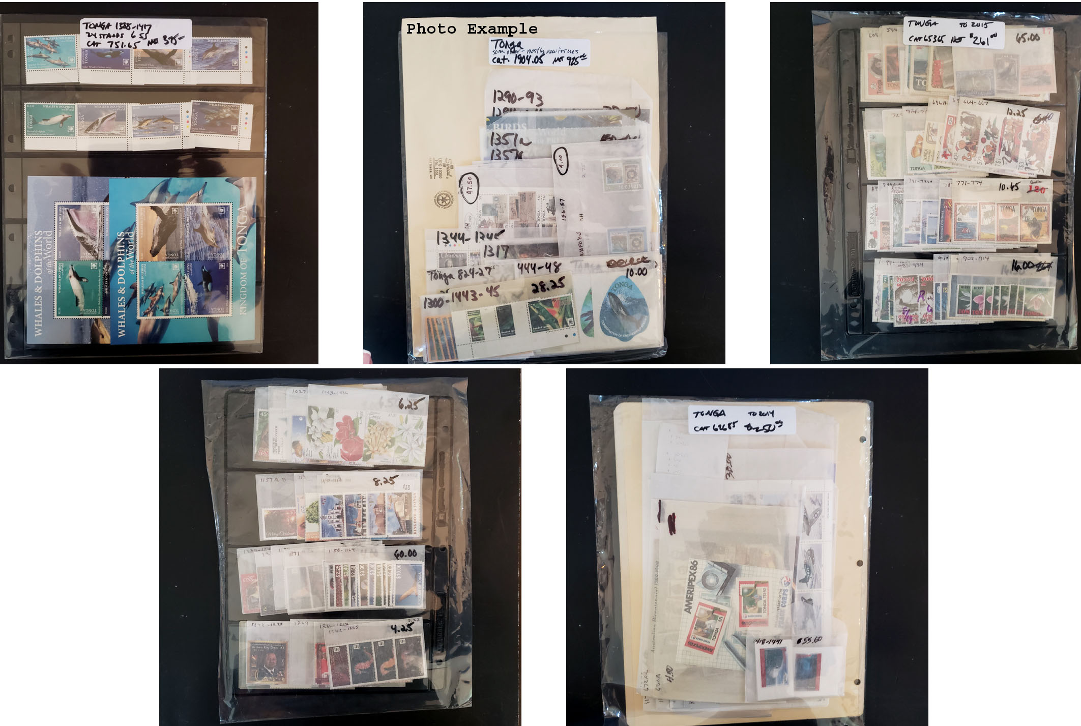 682 imageTONGA MINT NEW ISSUES , includes several dozen mint singles, sets, booklets and a large number of S/S's, mostly contained in glassines where each is identified by Scott number and the current catalog value, runs from #67//1445, virtually all different, this group is as received from the new issue dealers, nice clean lot .