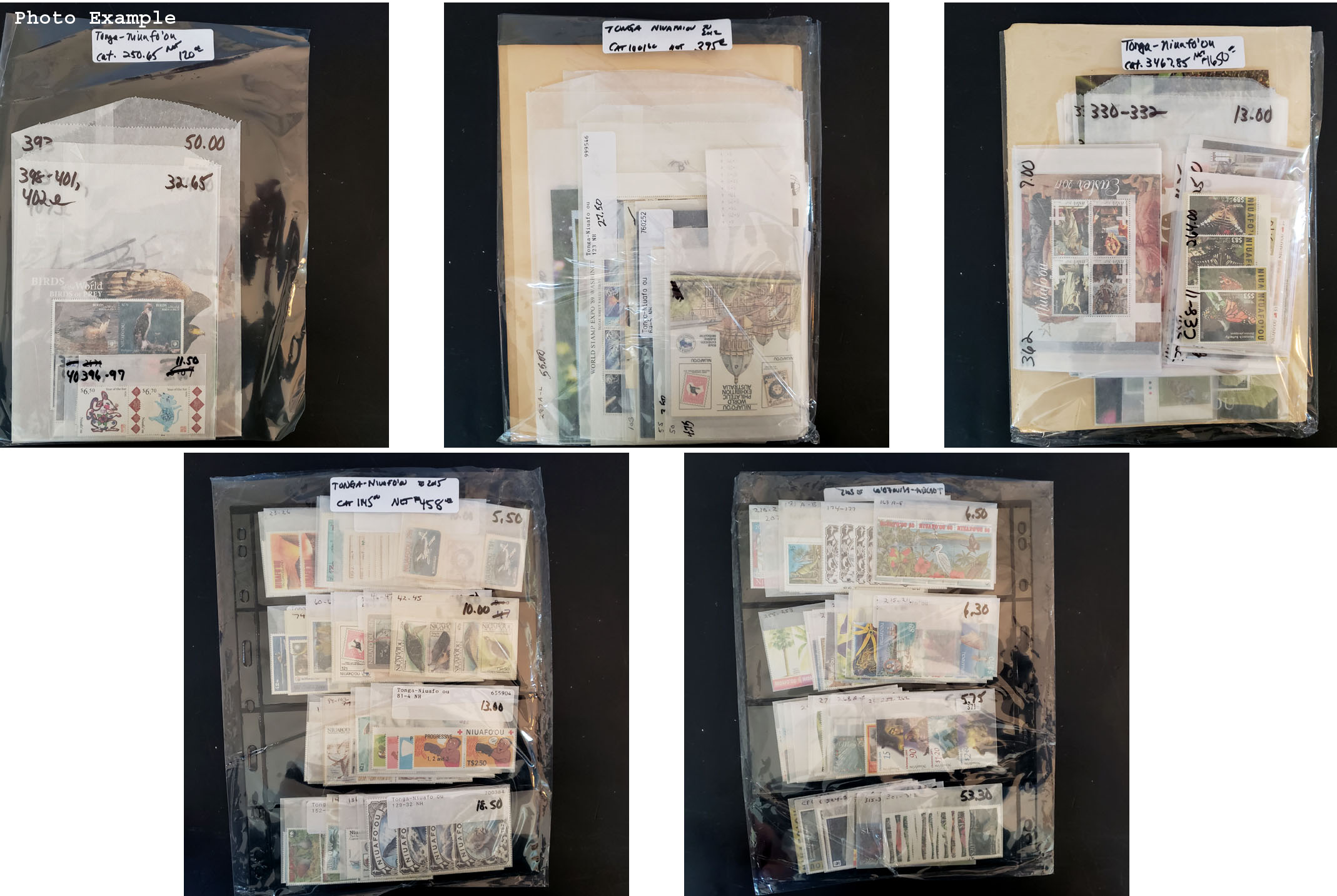683 imageTONGA - NIUAFO'OU MINT NEW ISSUES , includes several dozen mint singles, sets, booklets and a large number of S/S's, mostly contained in glassines where each is identified by Scott number and the current catalog value, runs from #1//405 and is quite complete, virtually all different, this group is as received from the new issue dealers, nice clean lot .