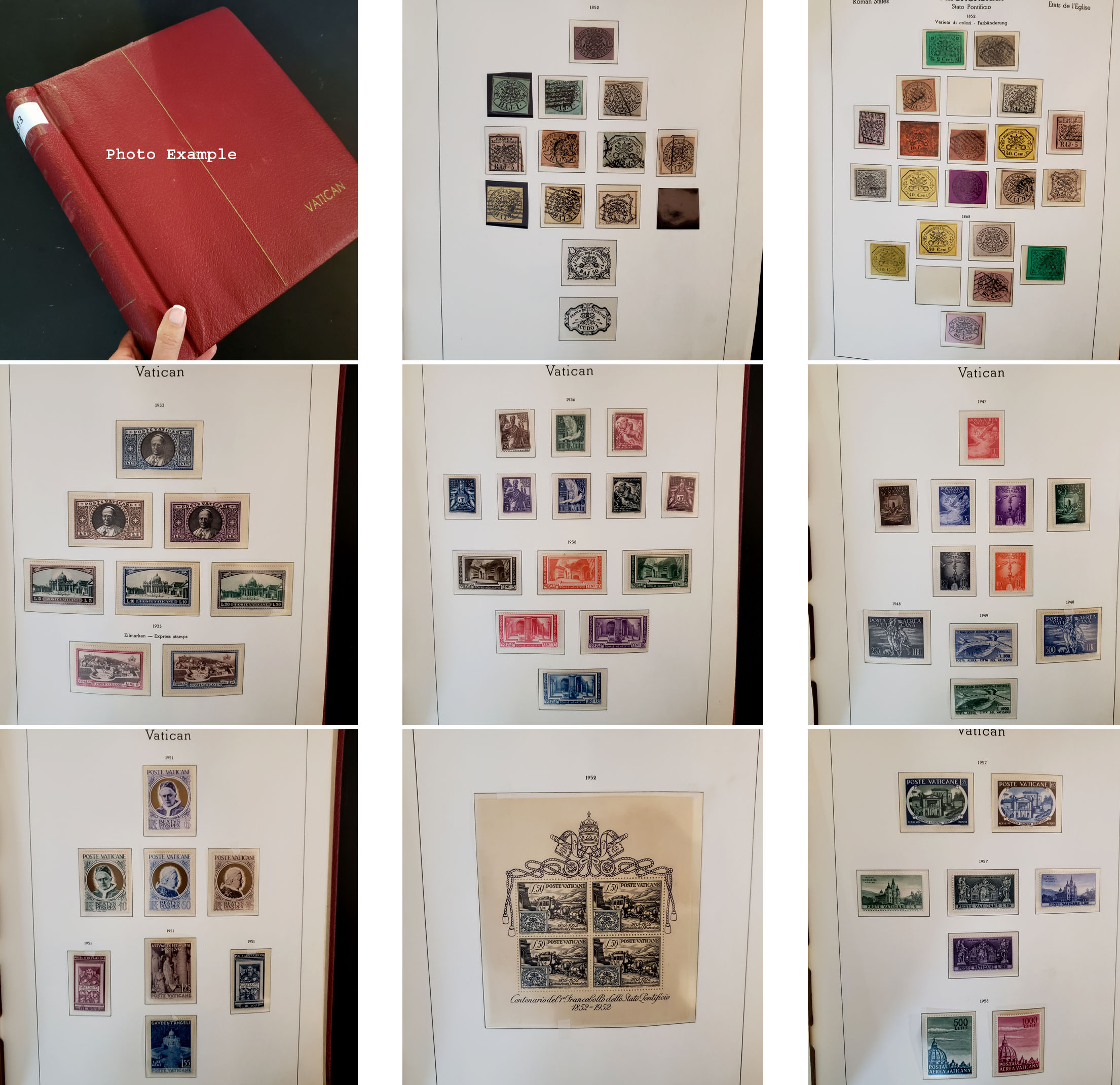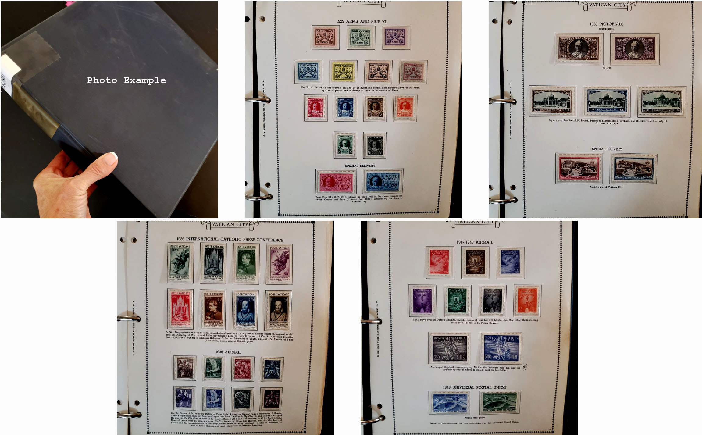 692 imageVATICAN CITY MINT COLLECTION, includes several hundred mint singles, sets and S/S's, mounted in a Lighthouse hingeless album, the collection runs to about 1981 and is virtually complete after 1932, there is also a few dozen mint and used Roman States in the front of this album, the overall condition is really quite clean with many being hinged, expect some faults in the Roman States area, values up to about $200 with some higher, there should be a good amount of total catalog value here.