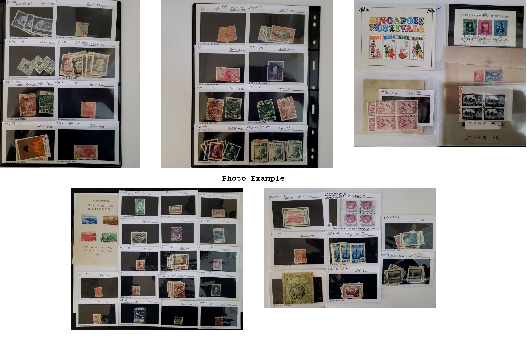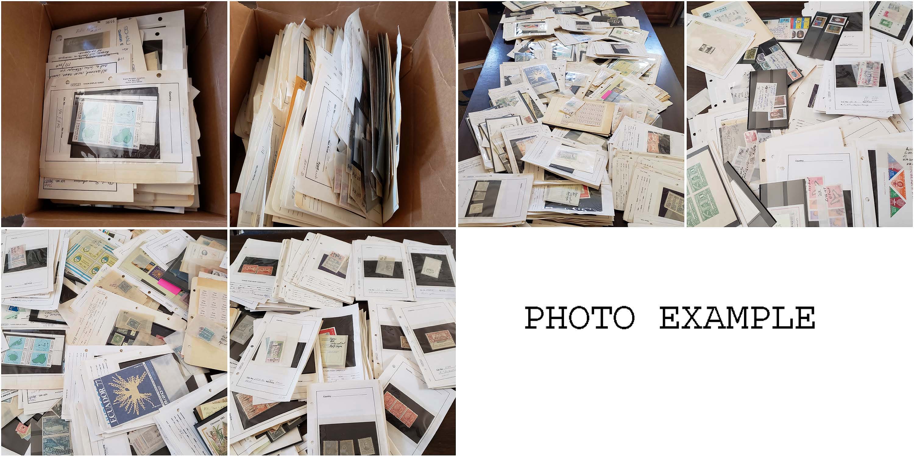 730 imageWORLDWIDE MINT AND USED ACCUMULATION ON RETAIL PAGES, includes several hundred various mint and used singles, sets and some multiples along with a few covers, mostly contained on individual retail pages and some in glassines or on black stock cards, most are identified but country, Scott number and some have current catalog values, several various countries but very strong in So. America, the overall condition is mixed and there are faults to be expected, values generally in the $10-100 range with some higher and some lower too, expect some minor duplication, a really good lot for the internet retailer since most of the work is done other than updating some catalog values, the value listed is our estimate and it is surely low since many of the values on the pages are many years old and some items don't have catalog values yet and those were not figured in our estimate, a very worthwhile lot and needs careful consideration.