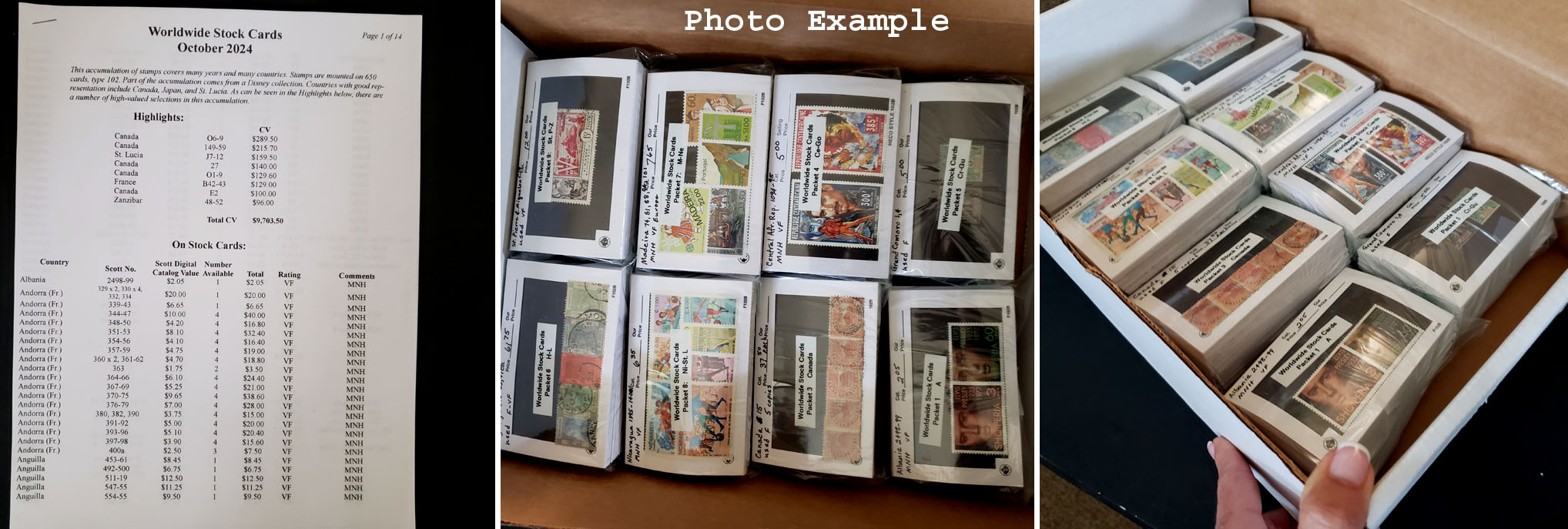 736 imageWORLDWIDE MINT AND USED ACCUMULATION, includes a few hundred mostly different, mixed mint and used, contained on 102 cards with each identified by Country, Scott and Price, overall mixed condition with faults to be expected, in addition to singles and some sets there are are also some groups of items for a specific country, good variety but there are a few minor duplicates, values up to about $200 with a few higher.