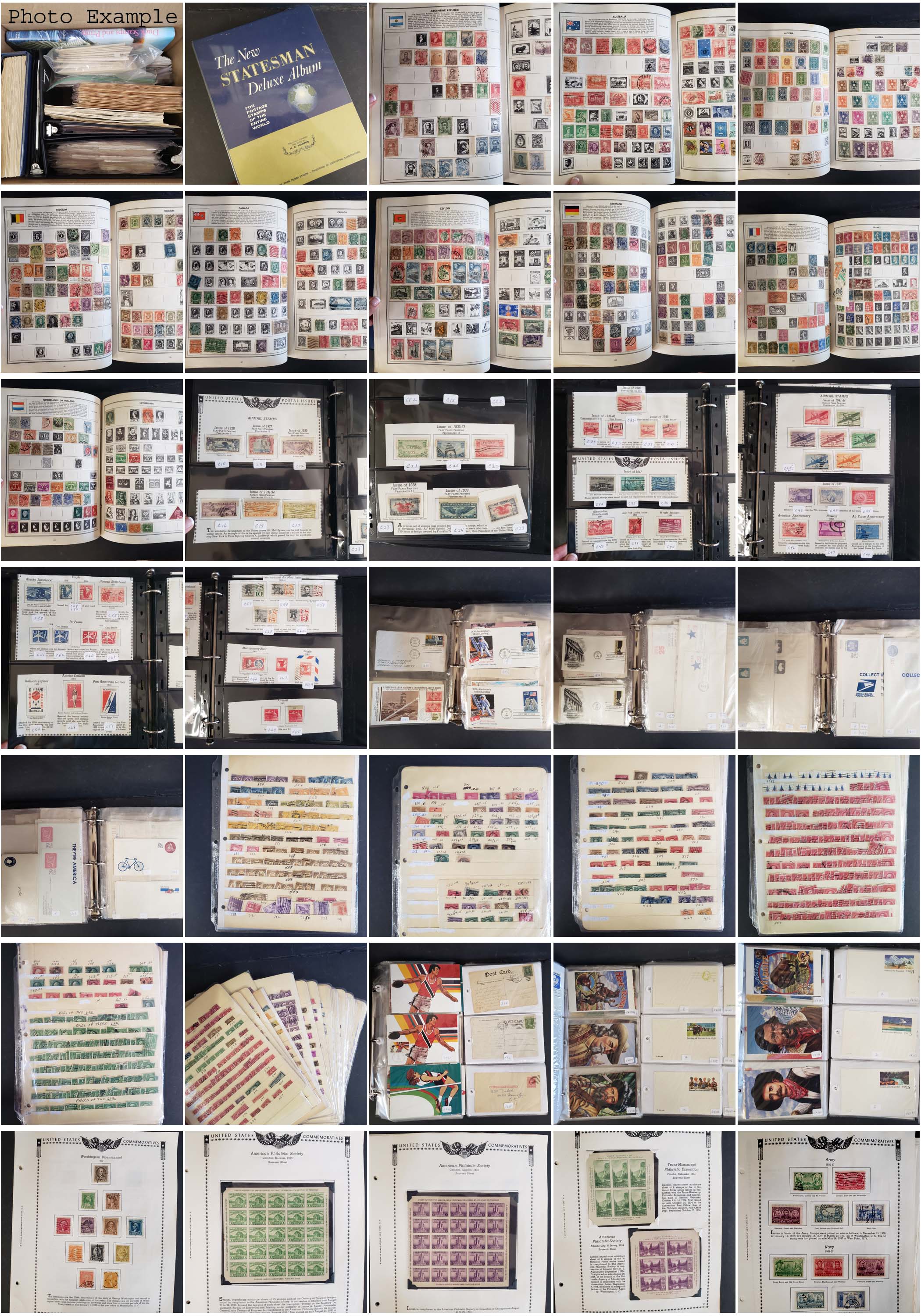 768 imageU.S. & WORLDWIDE ESTATE BALANCE OF STAMPS AND COVERS, includes several thousand mixed mint and used stamps and covers, contained in a large carton, there are several hundred various U.S. covers and FDC's, in albums and loose, there are several thousand various used U.S. singles and multiples on stock pages, there is a Harris Statesman album of worldwide - this album is probably worth about $100-150 with all different mint and used, there are several dozen mint U.S. postal stationary items, also some Elvis mint sheets and FDC's in sealed folders, also a U.S. used collection of post 1940 on album pages, some duplication in this lot, plenty of stamps to look through.