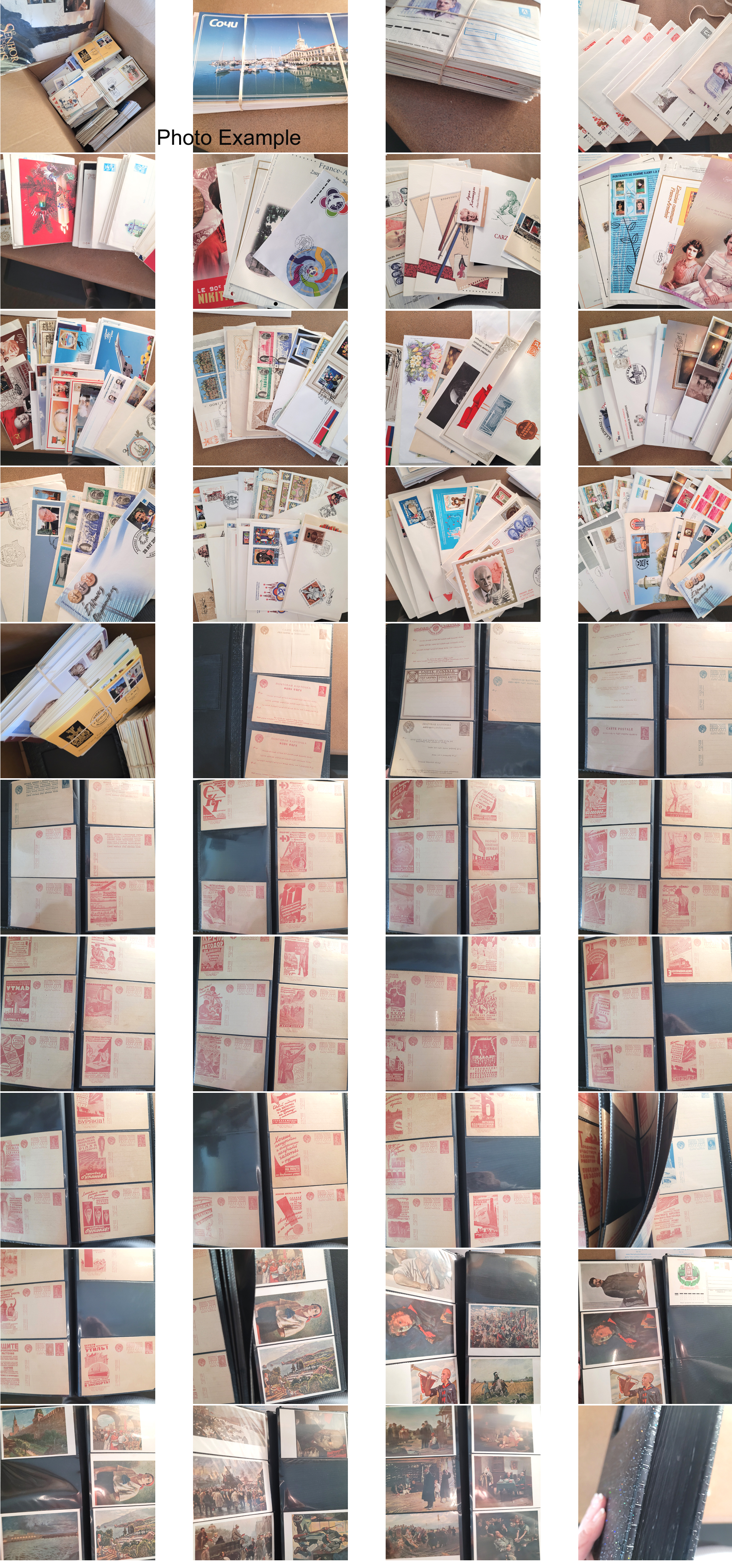 775 imageWORLDWIDE COVER ACCUMULATION, includes about 500 various covers and souvenir cards, all are loose in a large carton but bound together by types, packed into a large carton, a few different countries here but very strong in Russia and in fact maybe 75% of this lot is Russia related, overall mostly post 1950 with a few earlier and runs into the 1990's, strong in unused postal history items, postal cards, FDC's, and a good number of event covers with specialized cancels, the overall condition is really nice with only a few scattered faults, there is some duplication, the retail value of this group is surely in the several thousand dollars even just figuring $1-5 for most of items in this lot and there are some items here with values in the $10-25 range, a great lot to pick through and again a good amount of total retail value.
