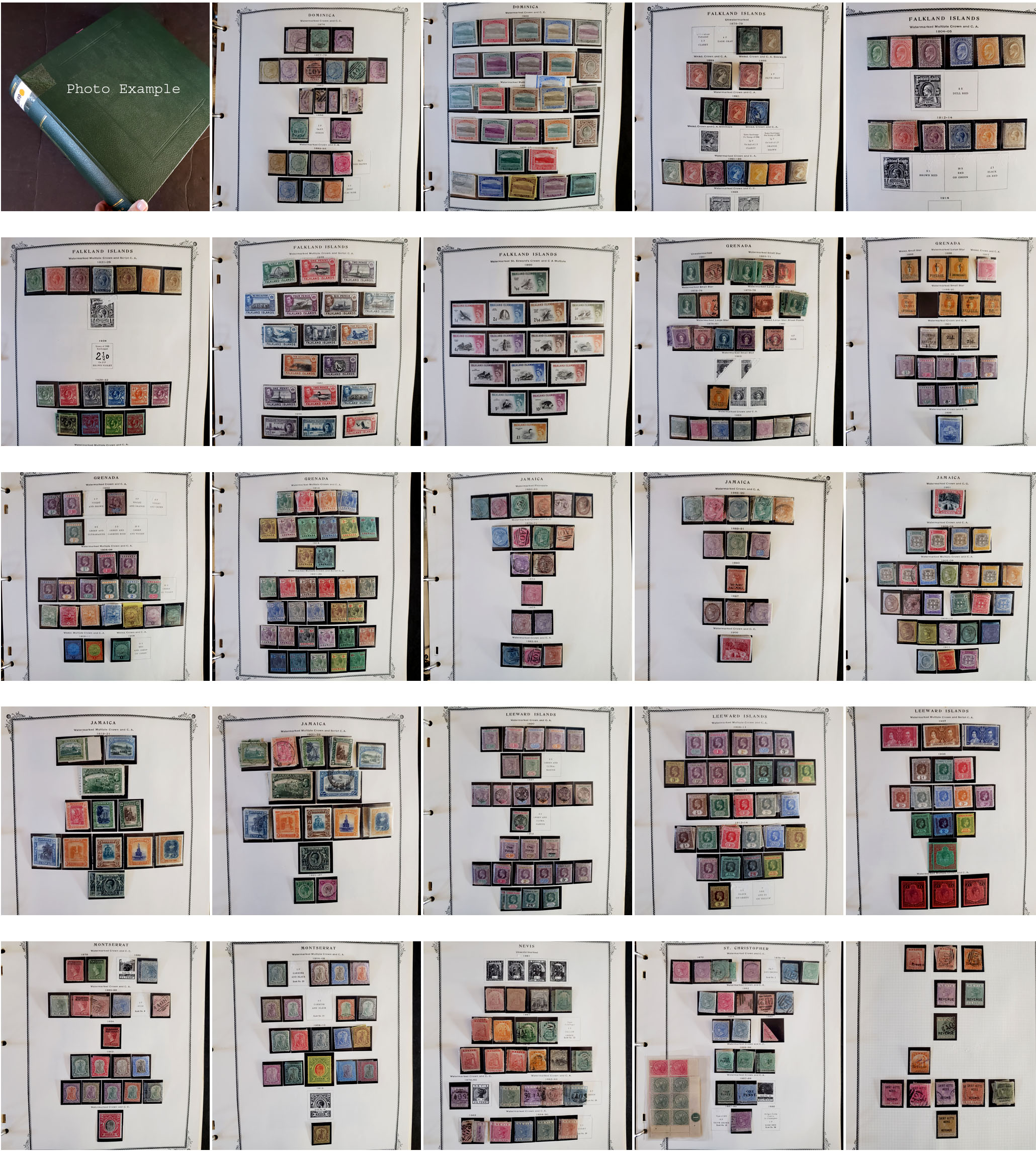 783 imageEXTENSIVE SPECIALIZED BRITISH OCEANIA COLLECTION, includes several hundred various mint and used singles and some multiples, mounted in a Scott Specialty album, the collection runs to about 1970 for some countries, the overall condition is mixed and there are faults but mostly quite clean with some NH included in the early mint material, this collection has both mint and used for many of the same issues AND includes a significant number of specialty items like color varieties and perf varieties for each issue, so there appears to be a lot of duplication but in reality there is many varieties included, the catalog value listed is for the most common variety so the overall actual catalog value should be much higher, values up to about $100 with some higher and there are a huge number of singles and sets with values in the $25-100 range, so plenty to pull out for retail or internet sales, the countries included in this collection along with the catalog values for each is as follows: Dominica($3,500), Falkland Islands(4,750), Grenada(7,600), Guyana(200), Jamaica(5,600), Leeward Islands(2,100), Montserrat(2,600), Nevis(6,500), St. Christopher(2,170) and St. Kitt/Nevis(1,500); we have included a couple dozen page scans of the early pages for each country, please note that there are a number of stamps included in most of the mounts, a great collection to break down for a Specialist or certainly a huge amount of retail value sales potential, don't let this one slip by.