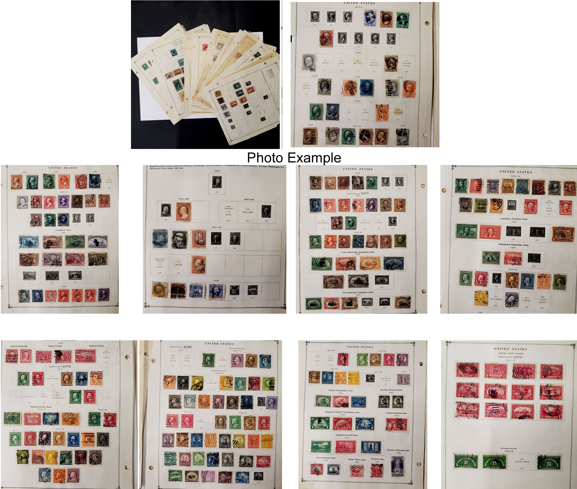 129 imageU.S. USED COLLECTION, includes several hundred different, hinged on albums pages in a box, the collection runs from 1847 to 2022 and is virtually all used, there are some scattered mint stamps(about $58 face), there is NO B.O.B. here, the overall condition is pretty clean but some faults are to be expected, there are some stamps with values over $50 like a U.S. #1 used, still room for expansion with this one, take a look.