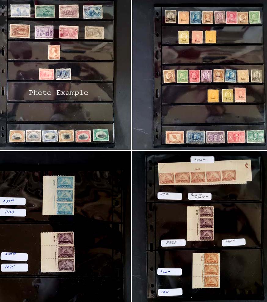 136 imageU.S. MINT SELECTION ON BLACK STOCK PAGES, includes a few dozen mint singles and some multiples, sorted onto black stock pages, there are some NH, H and some without gum, includes Columbians, Pan-Americans, Jamestown and Kansas-Nebraska, also some Revenue Battleship plate number strips, the overall condition here is mixed and faults are to be expected.