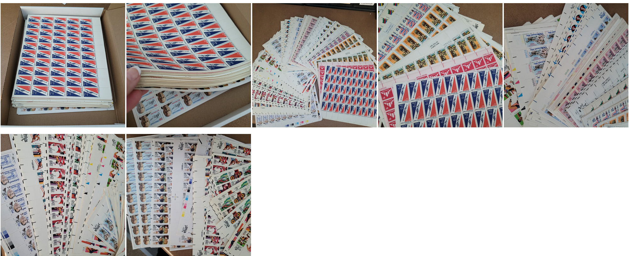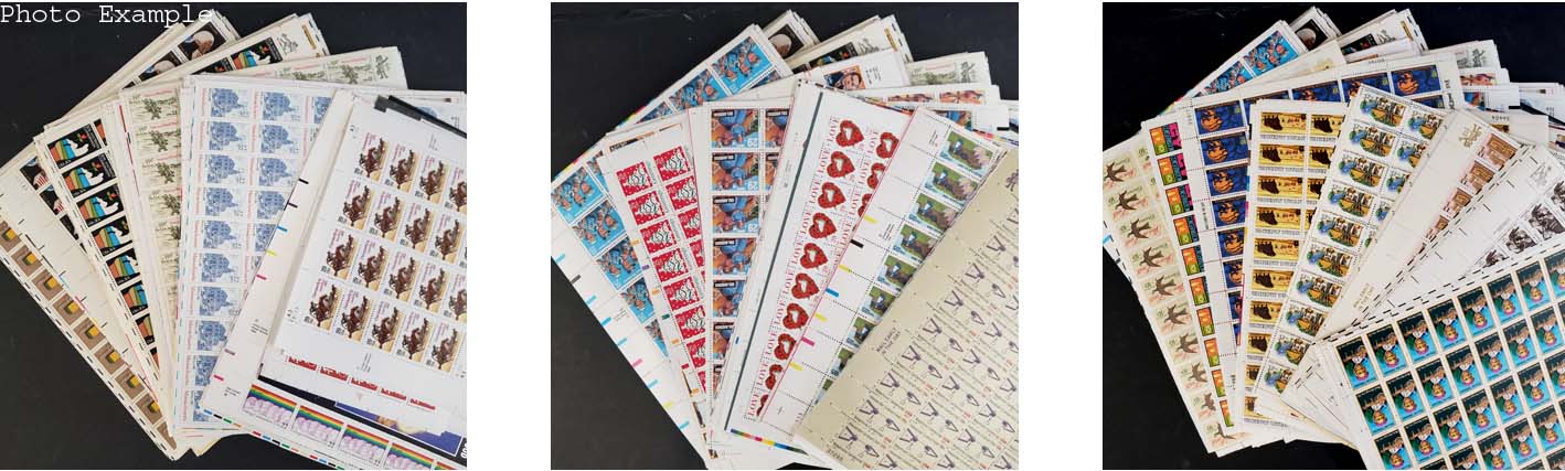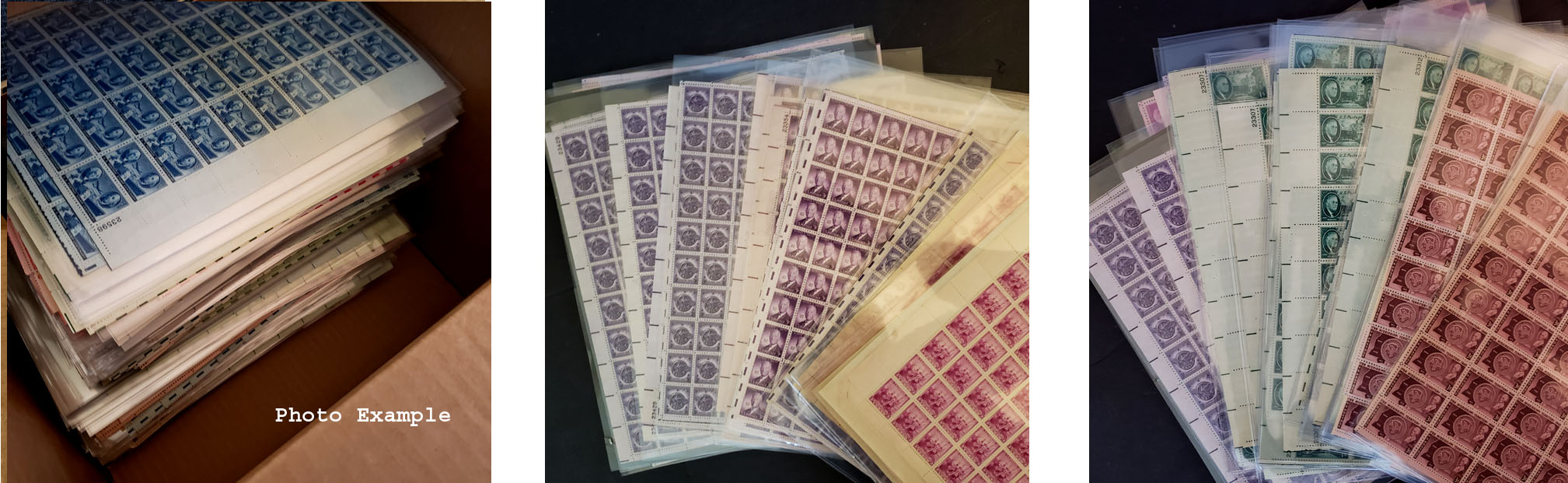 176 imageU.S. MINT SHEETS, 3c DENOMINATIONS, includes about 940 various mint sheets, virtually all are loose but most are in individual sheet protectors, stacked into a large box, good variety for the period but there is duplication with quantities generally in the 1-5 range with some higher, expect some sets and selvedge flaws here and there mostly due to handling, we noticed a few premium sheets scattered, with most being individually packed this massive group is pretty much ready for retail, many of these issues retail at 2-3 times face on the internet, Total Face = $1,500.00 (Image)