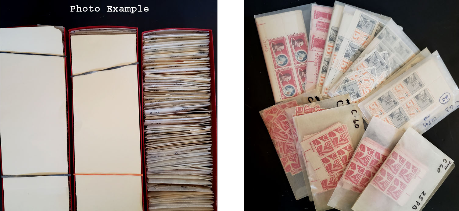 166 imageU.S. AIRMAIL MINT STOCK, includes thousands of mint singles, pairs, line pairs, strips, blocks, plate blocks and S/S's, contained in three red boxes and then in glassines where each is with cat. numbers and counts, there is some heavy duplication here, overall very clean with some scattered faults, runs up to the modern issues, the total catalog value will be substantial, the total face value is about $5,100.00, a very easy lot to work with and well worth careful consideration (Image)