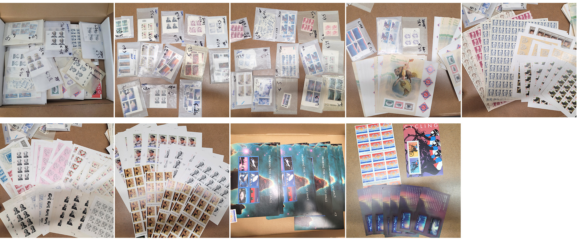 173 imageU.S. MINT SHEET ACCUMULATION, includes over 280 various mint sheets and sheetlets, mostly different but there are some scattered duplicates, runs to about the 29c denomination, contained loose in a flat white box, some minor faults to be expected due to handling, there are some slightly better sheets here, Total Face = $2,800.00 (Image)