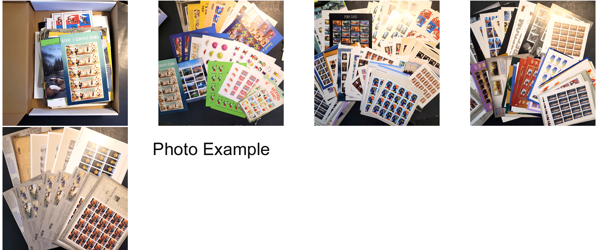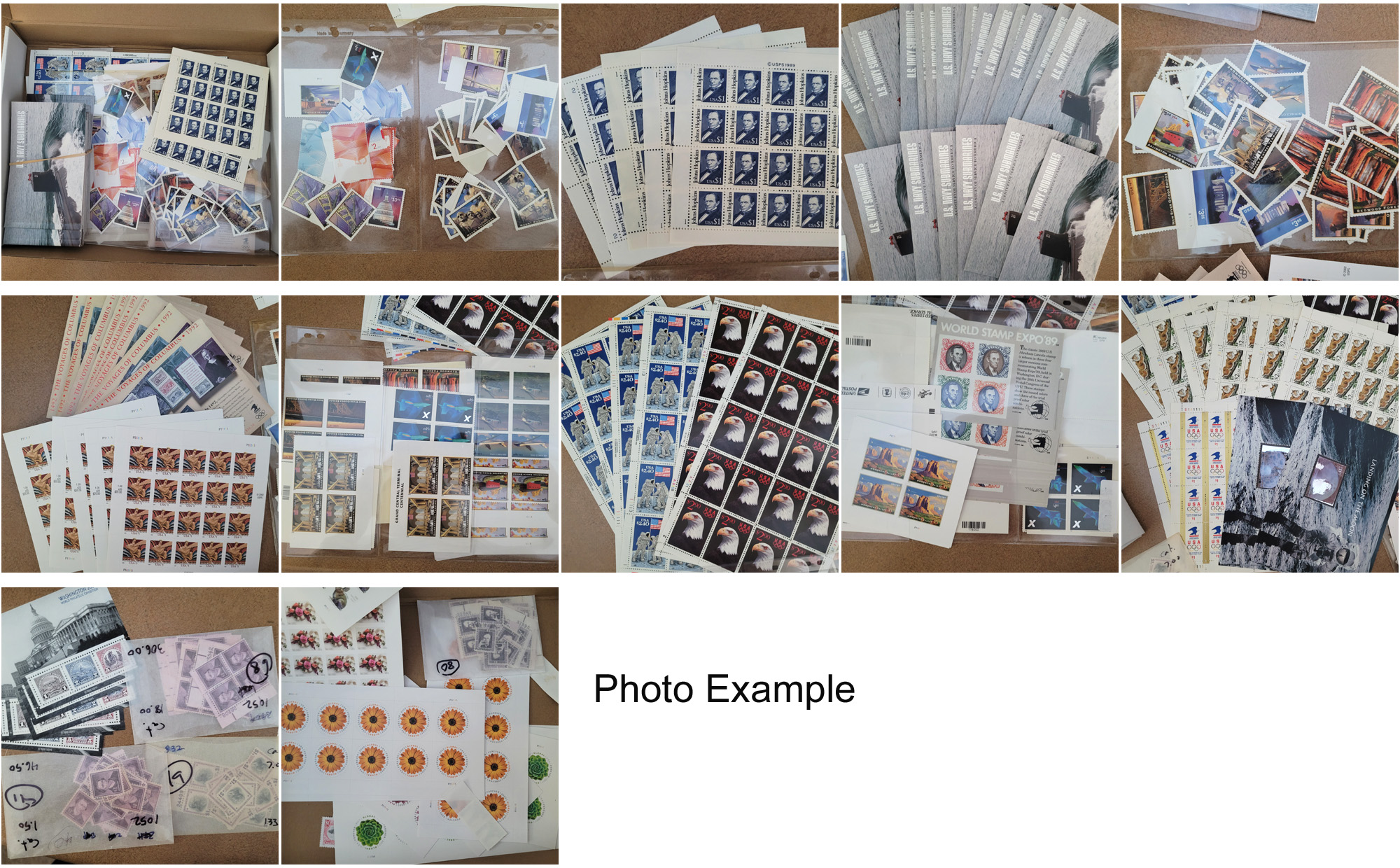 171 imageU.S. MINT ACCUMULATION, includes singles, blocks, booklets and souvenir booklets, contained loose and in glassines in a medium flat white box, there is a fair amount of heavy duplication, some mixed condition, all are higher denominations between 50c and $1.00, Total Face = $3,100.00 (Image)