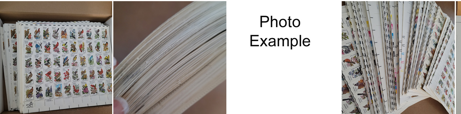 175 imageSTATE BIRDS MINT SHEETS GROUP, includes 255 mint sheets, contained loose in a flat white box, this group has both perf varieties of this sheet, overall pretty clean but there may be some scattered faults due to handling, Total Face = $2,550.00 (Image)