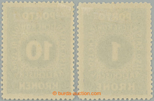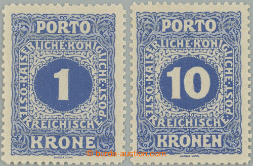 Philately. POSTAGE-DUE / ANK.55B, 57B, Small numerals 1 Koruna and 10K with rarer line perforation 12½; hinged, catalogue value for MNH 650EUR