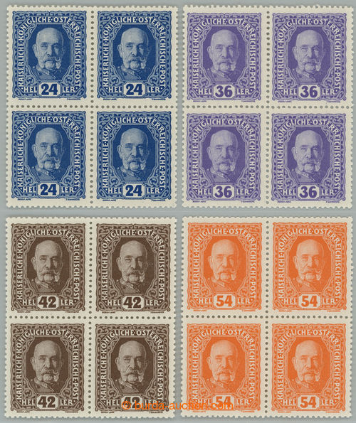 Philately. POSTAGE-DUE / Mi.P60-P63, Franz Joseph I. 24h-54h WITHOUT OVERPRINT; superb blocks of four, c.v.. 50.000CZK, extraordinary offer, blocks these stamps with at all are rare! (Image) (Image2)