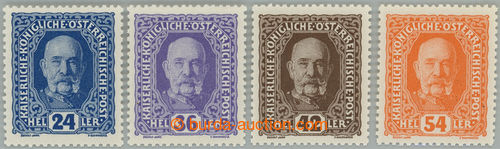 Philately. Mi.P60-P63, Franz Joseph I. 24h-54h WITHOUT OVERPRINT; luxury series, c.v.. 10.000CZK, rare, in collections often missing!