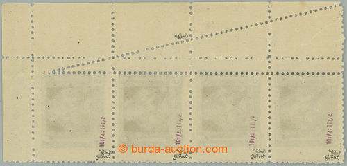 Philately. Pof.30C, Mother and Child 75h grey, line perforation 11½ : 10½, L upper corner vertical strip of 4, L vert. perf trojita, from that 1x to to picture of stmp and 1x oblique; mint never hinged, small spot and slightly