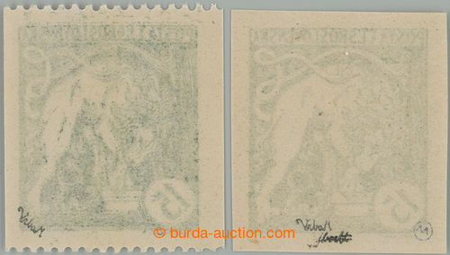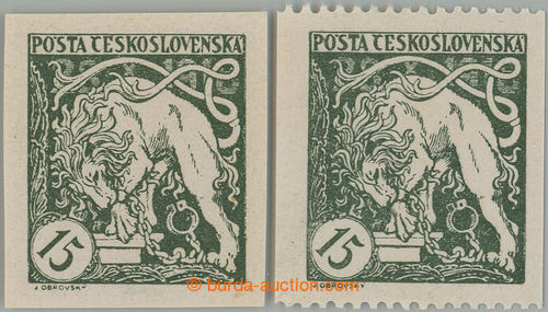 Philately. Pof.27N+27 production flaw, Lion Breaking its Chains 15h green imperforated + taz value with omitted vert. perforacemi; mint never hinged, exp. Vrba (Image) (Image2)