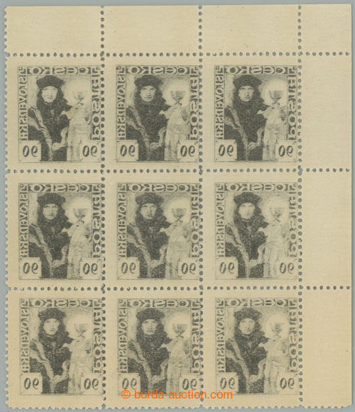 Philately. Pof.163 Ob, 90h black, UL corner blk-of-9 with full offset on gum; mint never hinged (Image) (Image2)