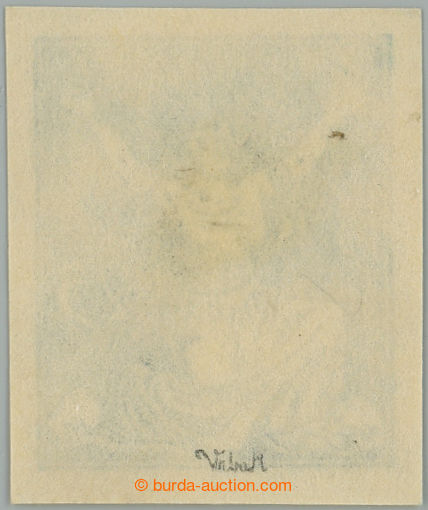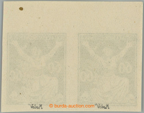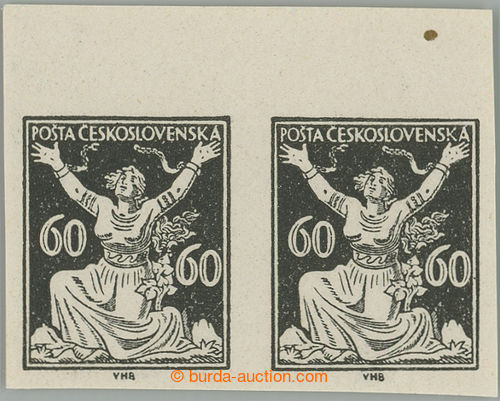 Philately. PLATE PROOF values 60h in black color, horizontal pair with upper margin, C.C. on stamp paper with gum; grain in margin, otherwise mint never hinged, exp. Vrba (Image) (Image2)