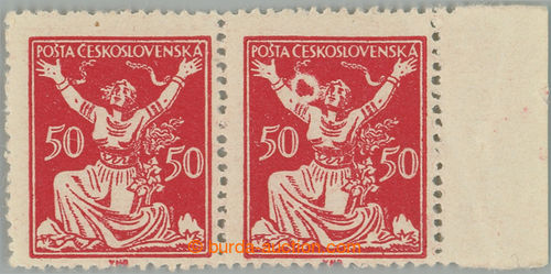 Philately. Pof.155A flaw print, 50h red, horizontal pair with R margin and printing flaw - significant white circle near the head; mint never hinged, exp. Vrba (Image) (Image2)