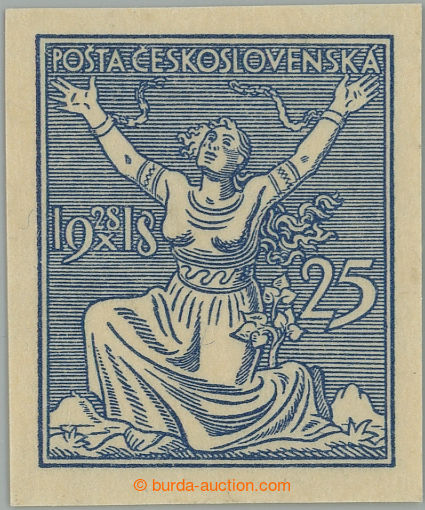 Philately. PLATE PROOF values 25h with year L, letterprint plate proof greater size 22x27mm in blue color on/for stronger paper without gum; exp. Vrba (Image) (Image2)