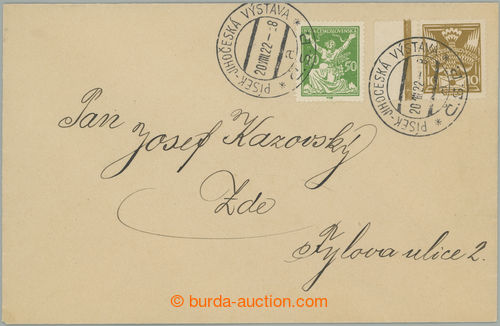 Philately. letter in the place in/at V. postal rate, postal-charge 60h paid i.a. stamp. issue Chainbreaker 50h green with plate variety - little-egg in waist, Pof.156 DV 1, posting special postmark PISEK - JIHOCESKA EXHIBITION