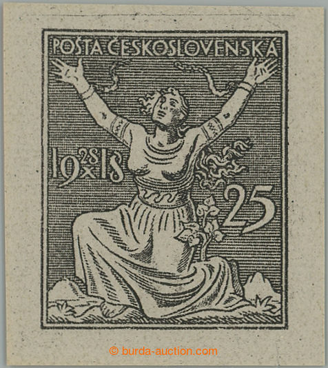 Philately. PLATE PROOF values 25h with year L, gravure printing plate proof greater size 22x27mm in black color on stamp paper with gum; hinged, on reverse hints printing color, exp. Vrba (Image) (Image2)